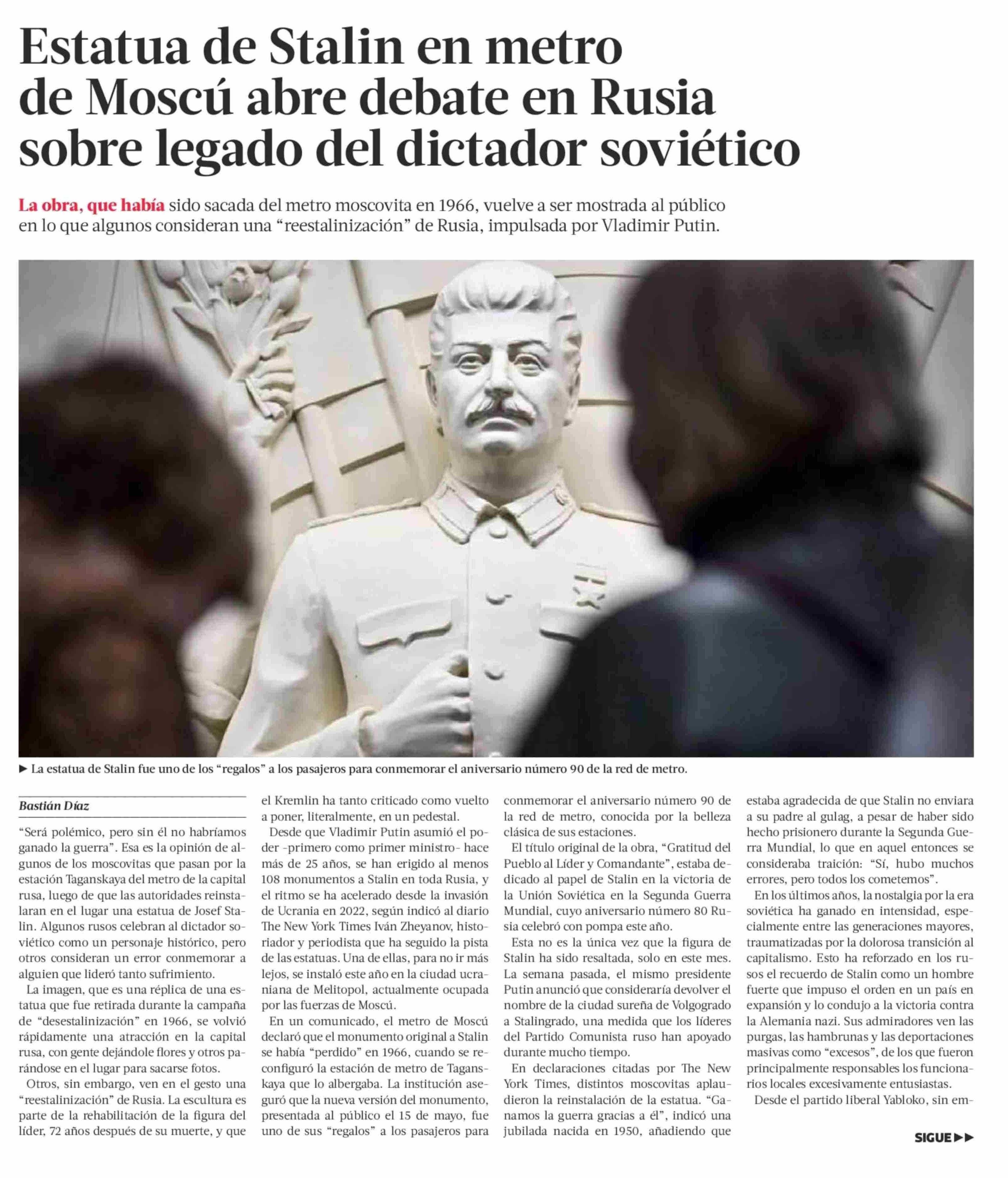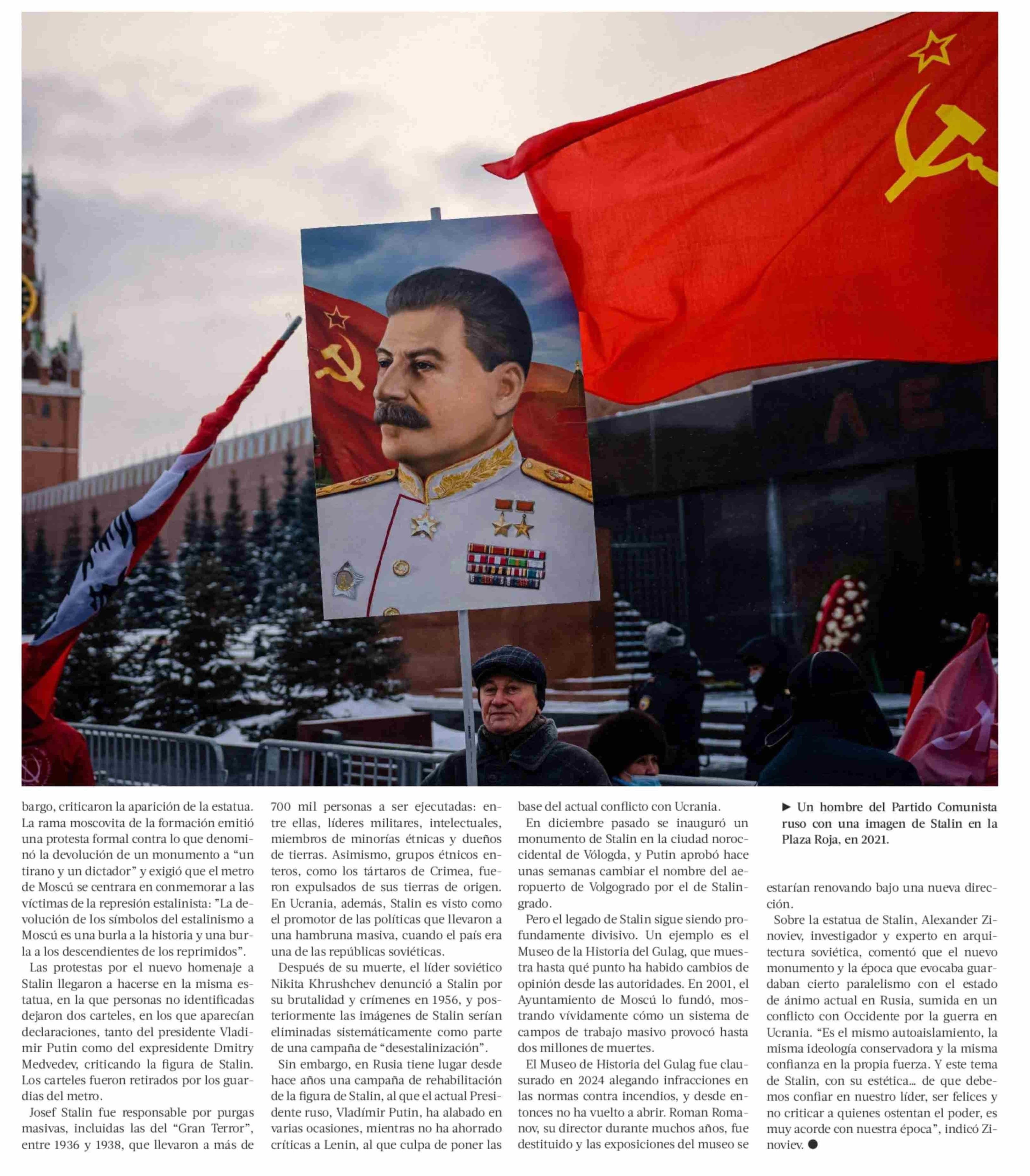Título: Estatua de Stalin en metro de Moscú abre debate en Rusia sobre legado del dictador soviético
