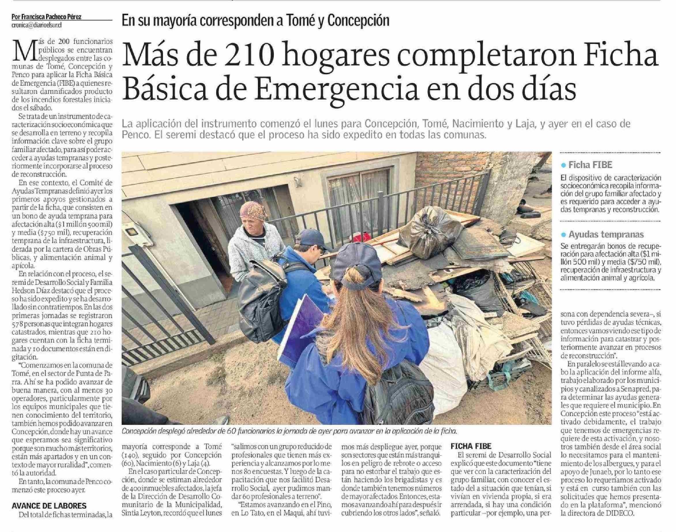 Título: Más de 210 hogares completaron Ficha Básica de Emergencia en dos días