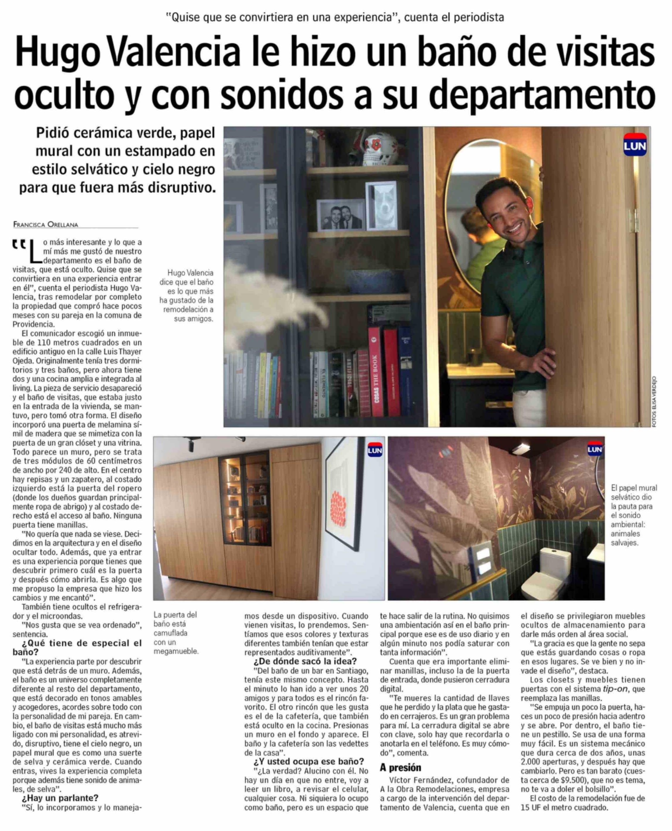 Hugo Valencia le hizo un baño de visitas oculto y con sonidos a su departamento