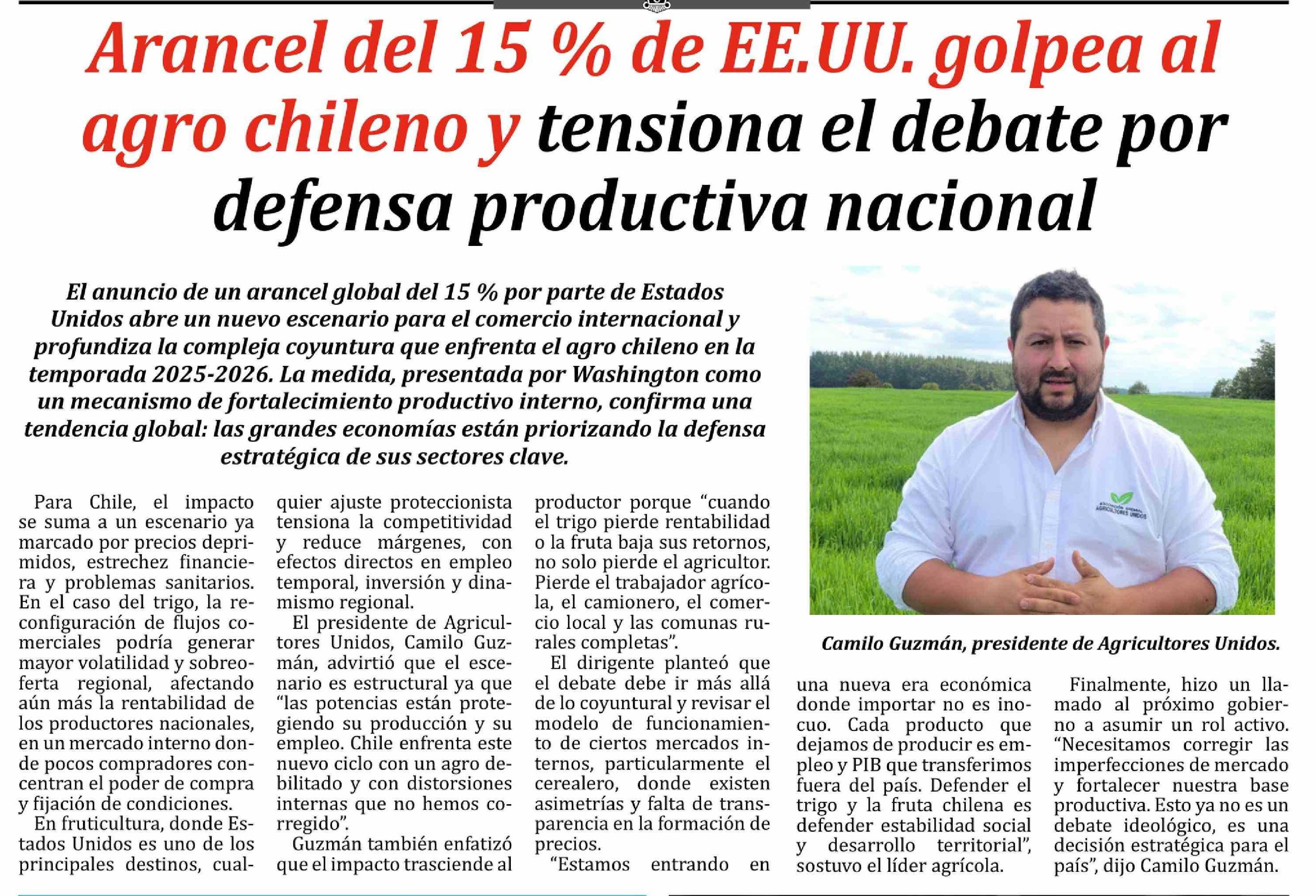 Título: Arancel del 15 % de EE.UU. golpea al agro chileno y tensiona el debate por defensa productiva nacional