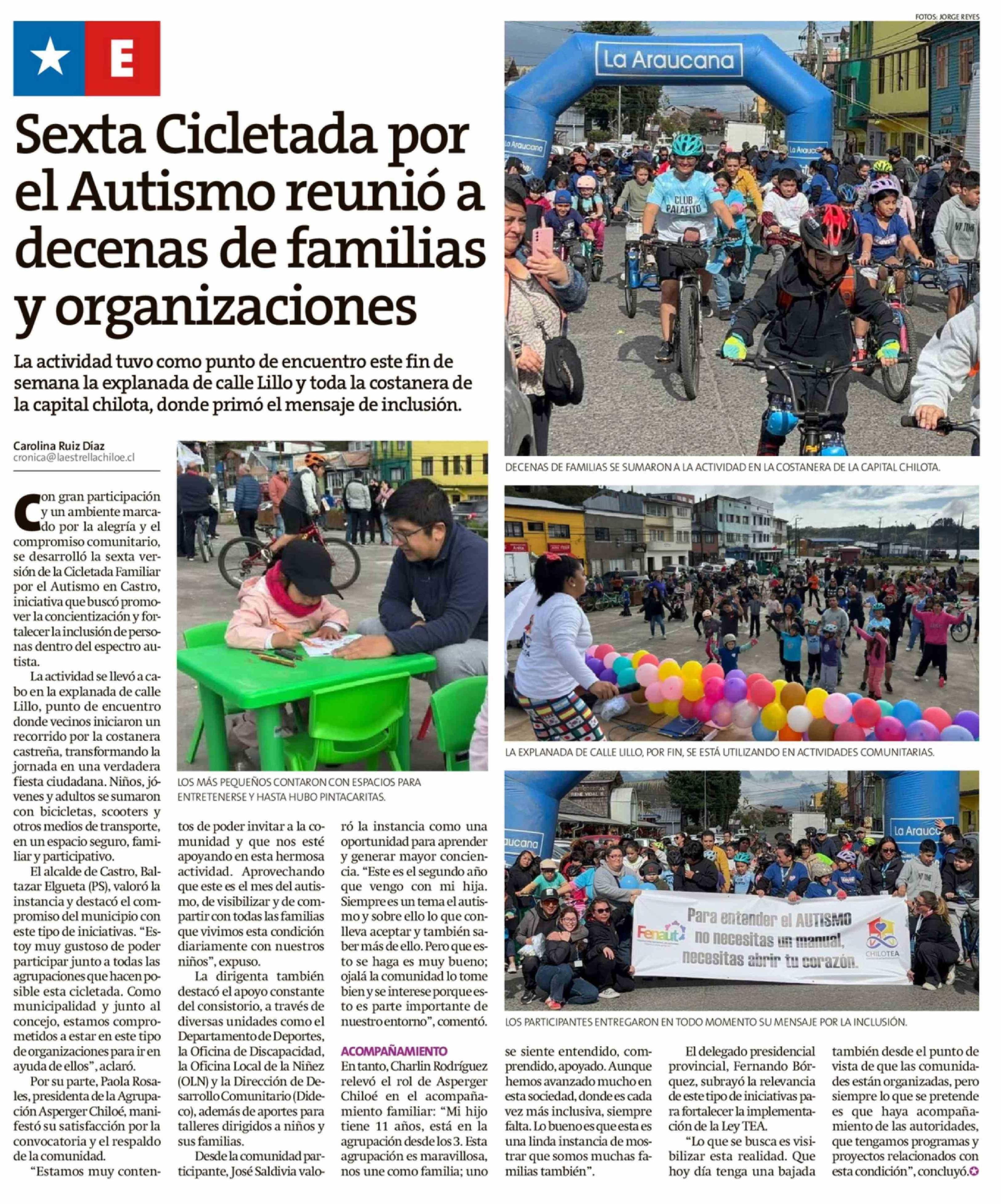 Sexta Cicletada por el Autismo reunió a decenas de familias y organizaciones 13-04-2026 La Estrella de Chiloé |