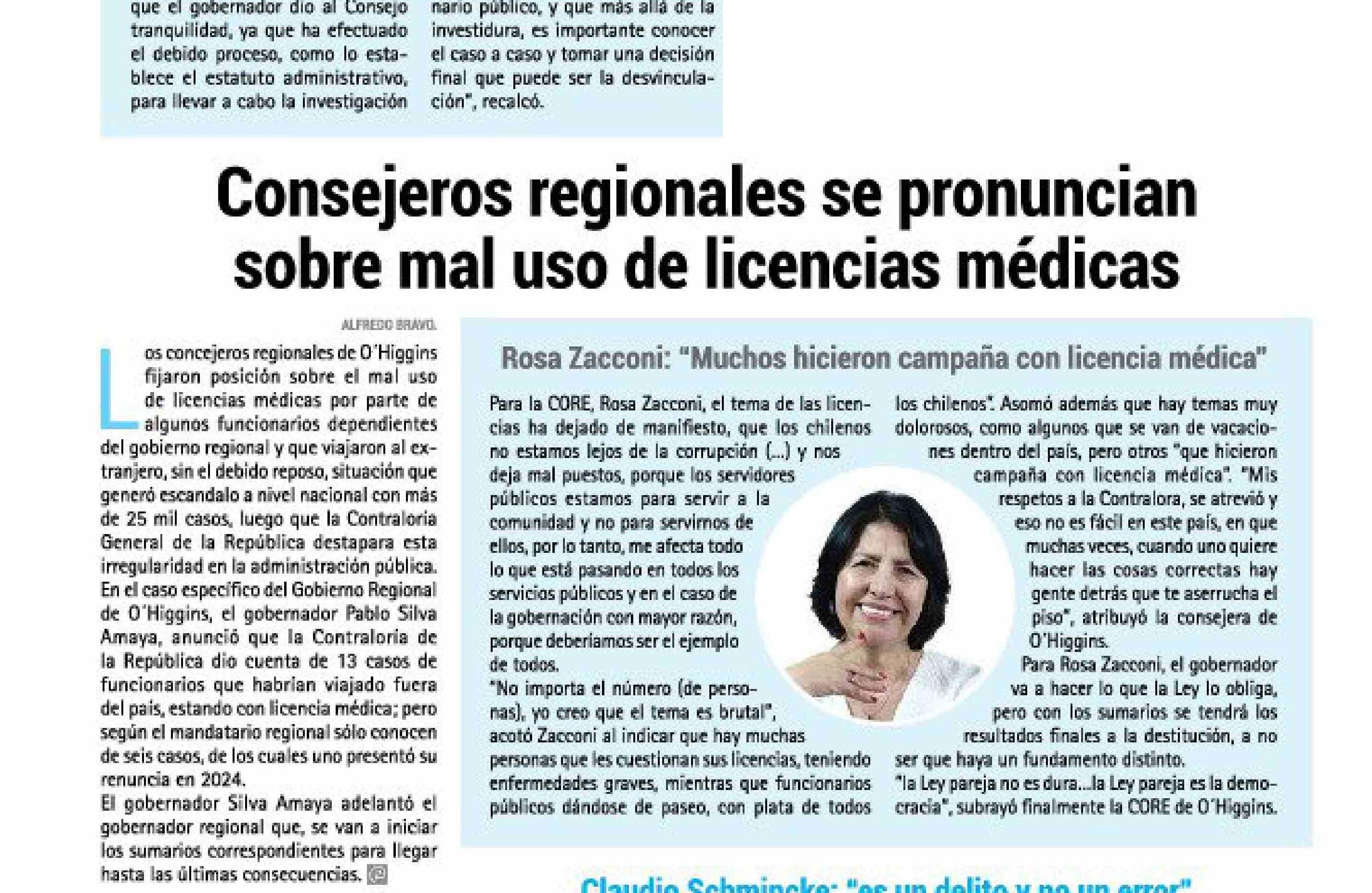 Consejeros regionales se pronuncian sobre mal uso de licencias médicas 02-06-2025 El Rancagüino |