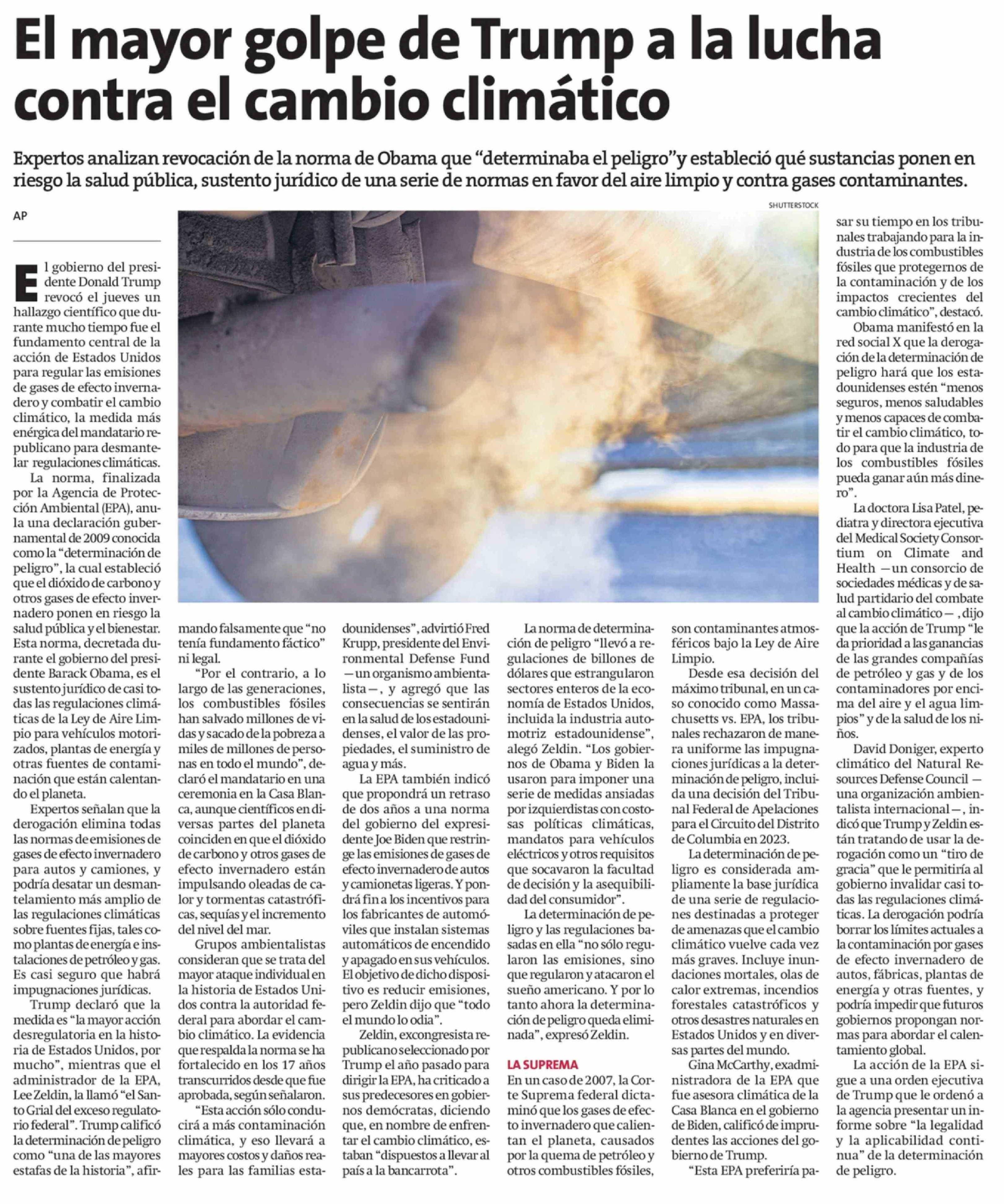 El mayor golpe de Trump a la lucha contra el cambio climático 15-02-2026 La Estrella de Arica |