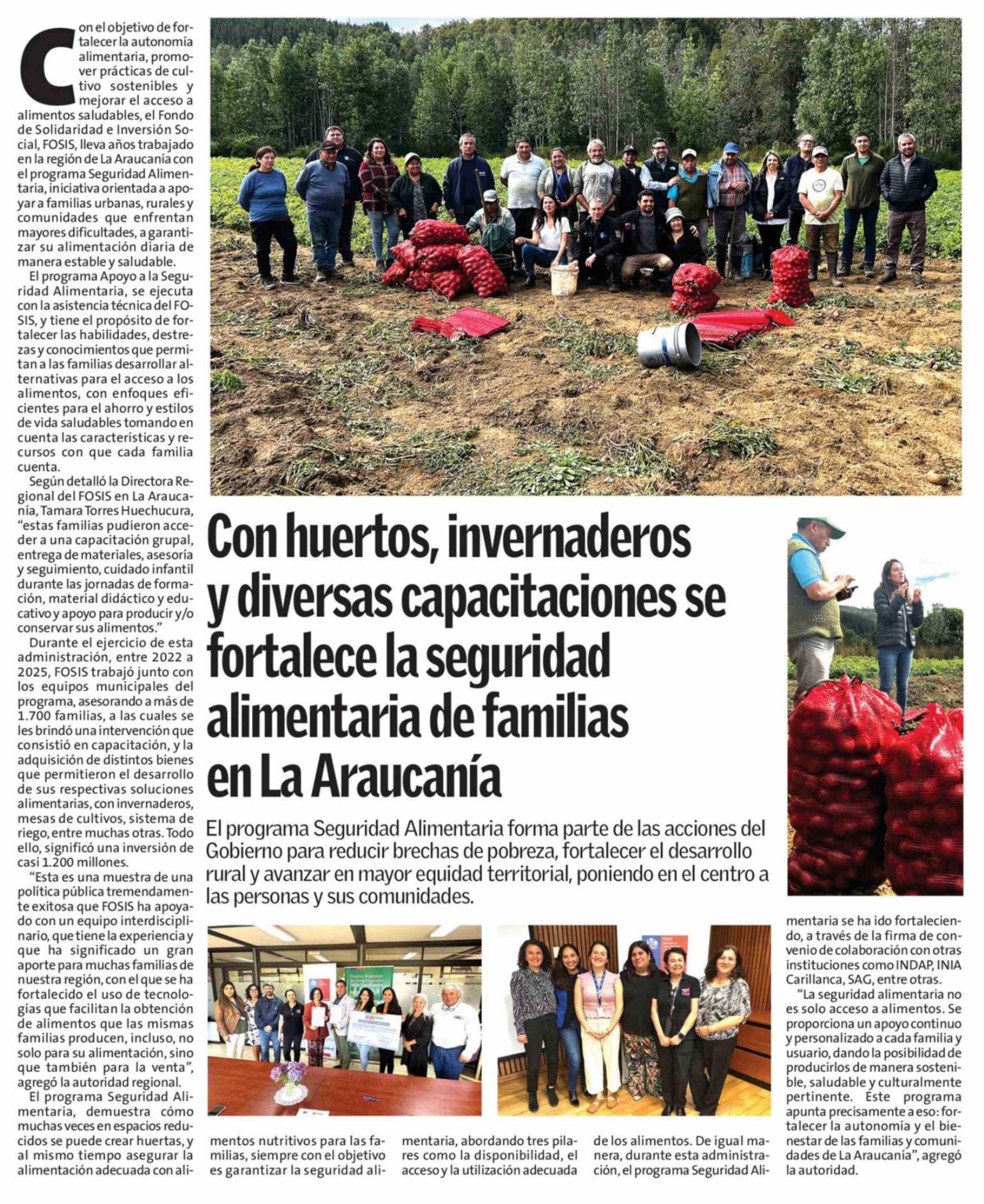 Título: Con huertos, invernaderos y diversas capacitaciones se fortalece la seguridad alimentaria de familias en La Araucanía