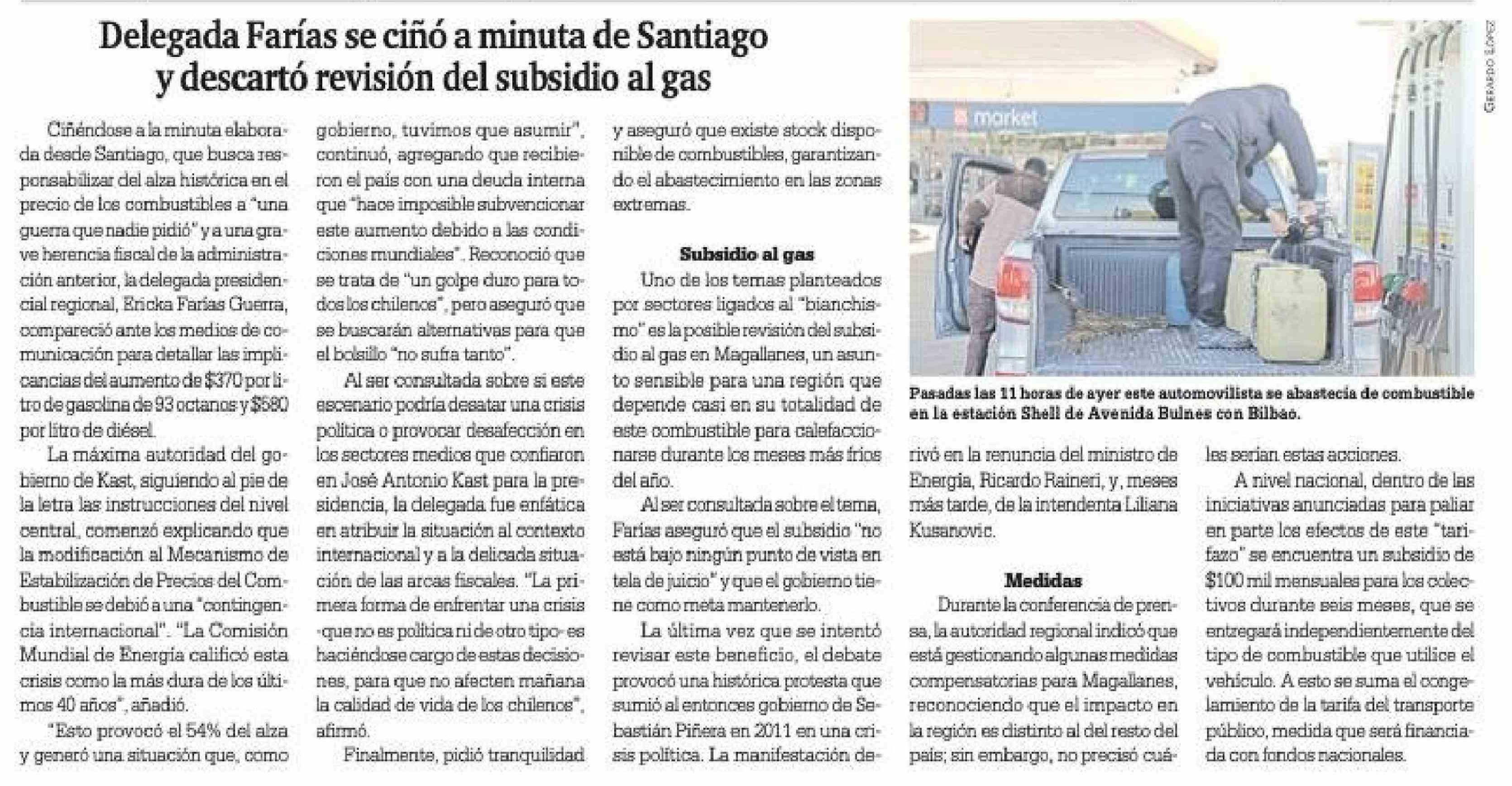 Delegada Farías se ciñó a minuta de Santiago y descartó revisión del subsidio al gas 25-03-2026 La Prensa Austral |