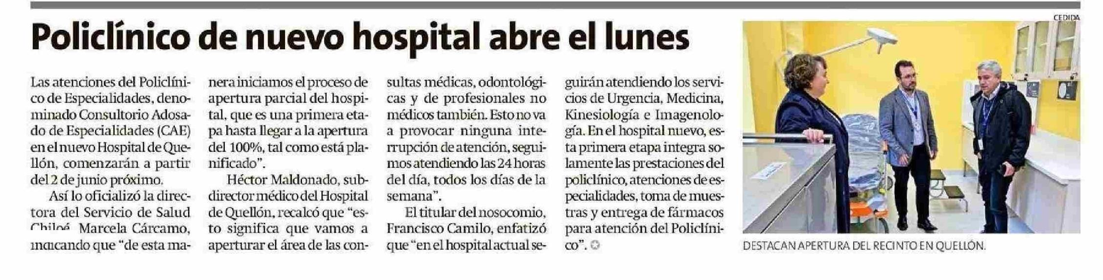 Policlínico de nuevo hospital abre el lunes 27-05-2025 La Estrella de Chiloé |