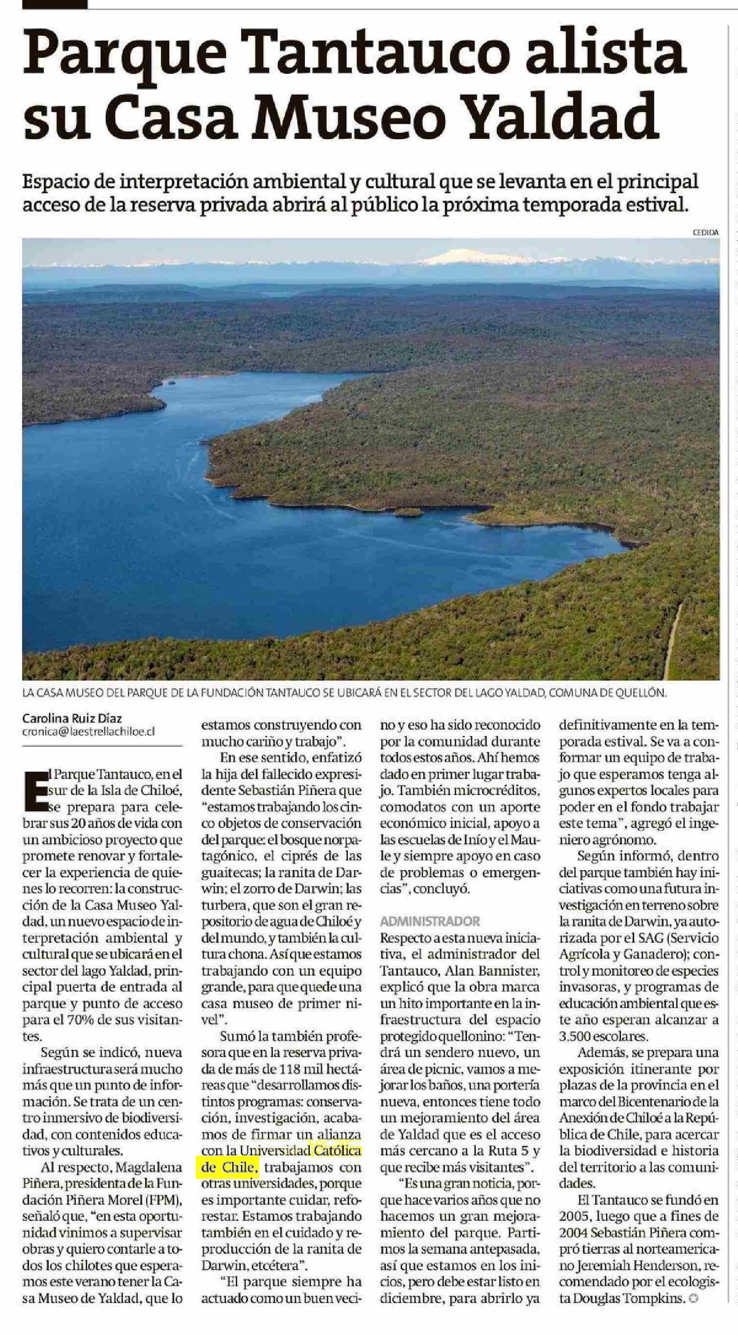 | Título: | Parque Tantauco alista su Casa Museo Yaldad |