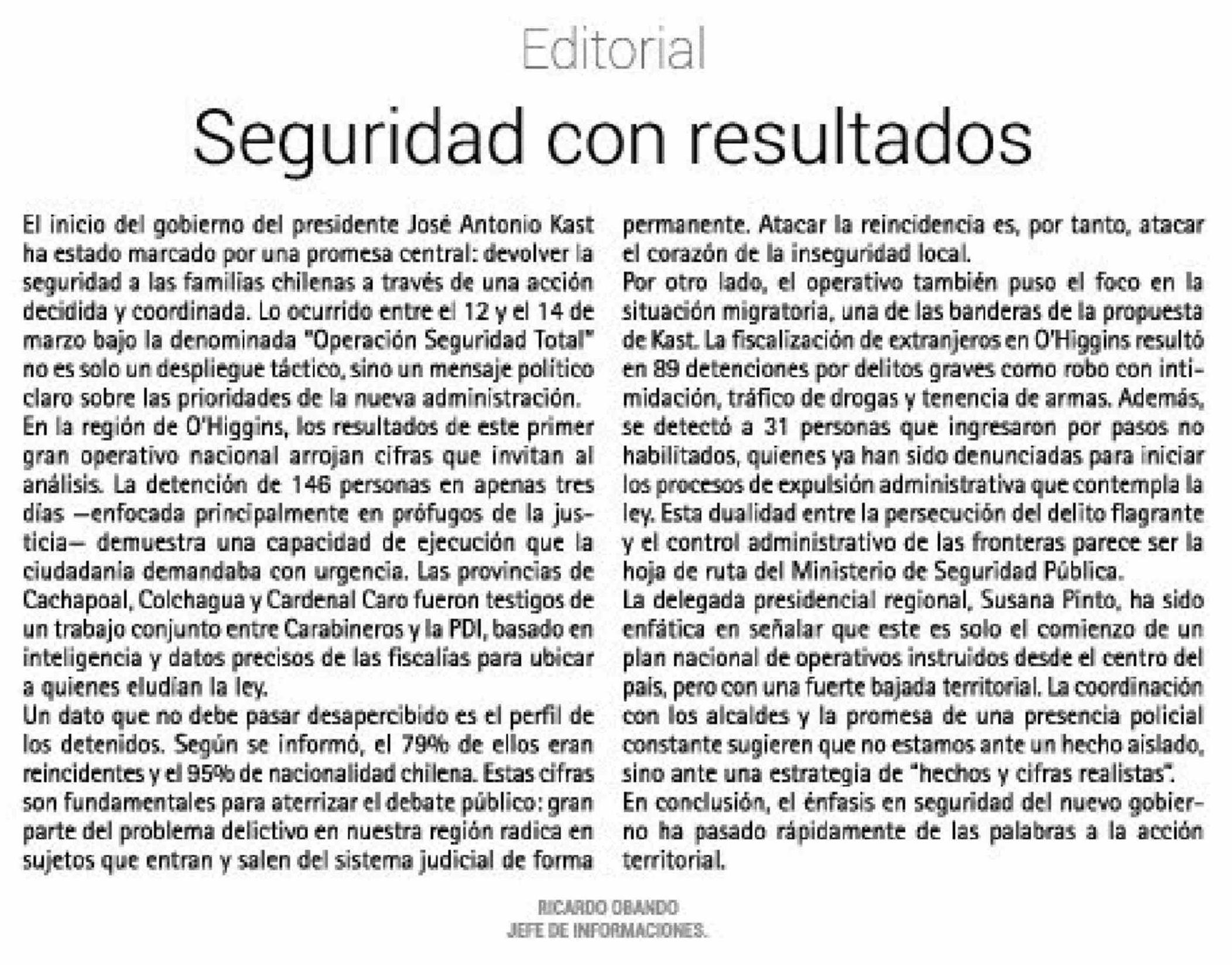 Fecha: 18-03-2026 Sector: Editorial Región: Región del Libertador General Bernardo O'Higgins