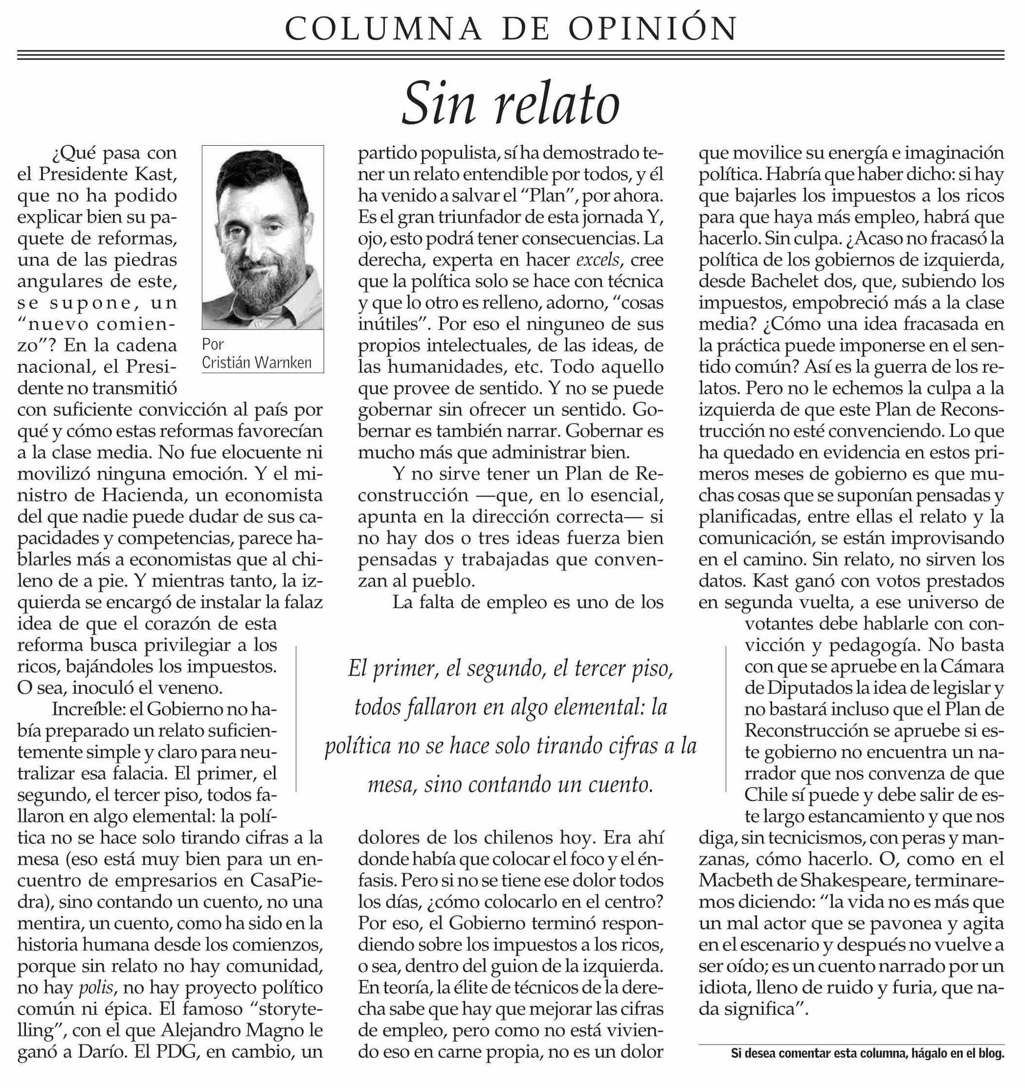 Columnas de Opinión: Sin relato 24-04-2026 El Mercurio |