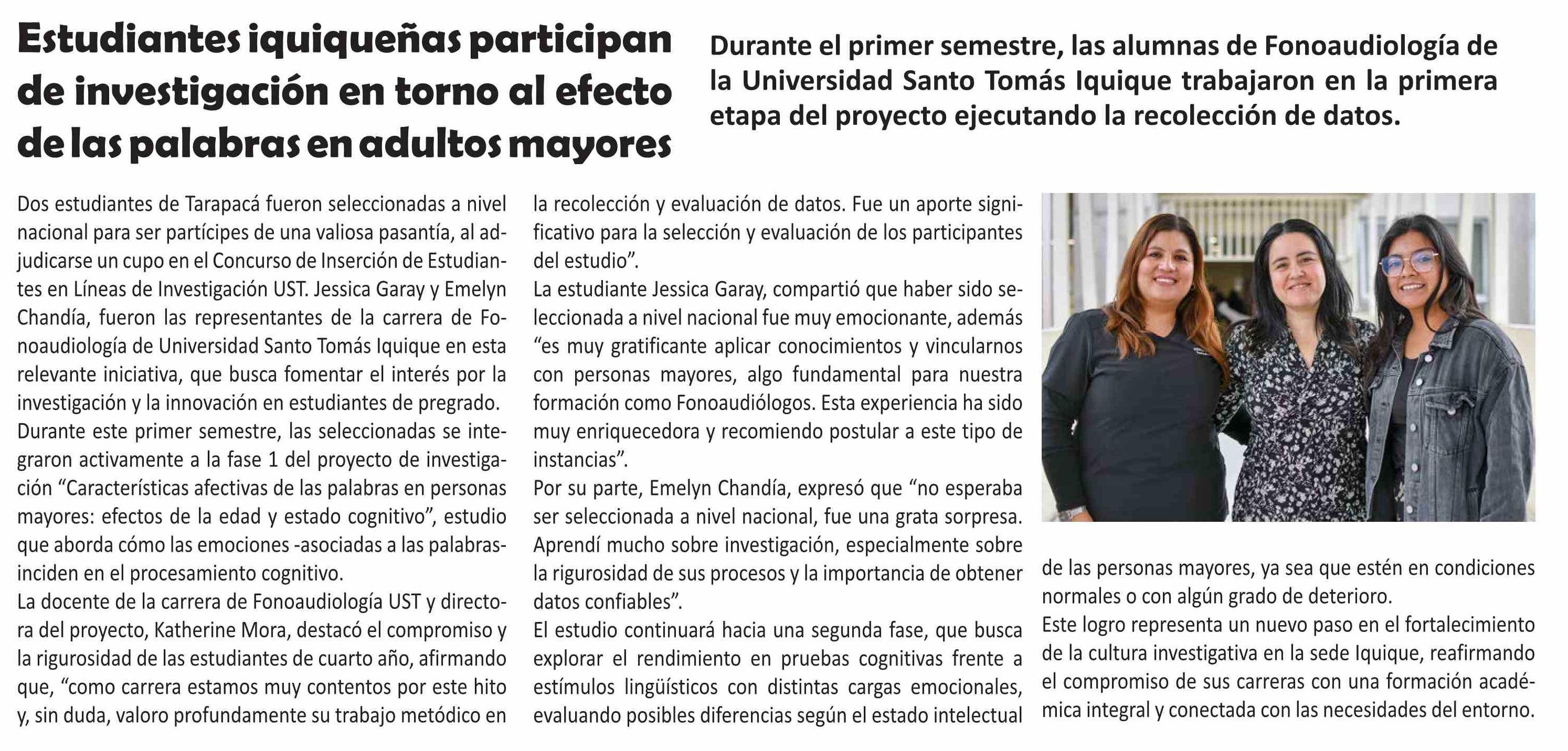 Estudiantes iquiqueñas participan de investigación en torno al efecto de las palabras en adultos mayores 14-06-2025 El Longino |