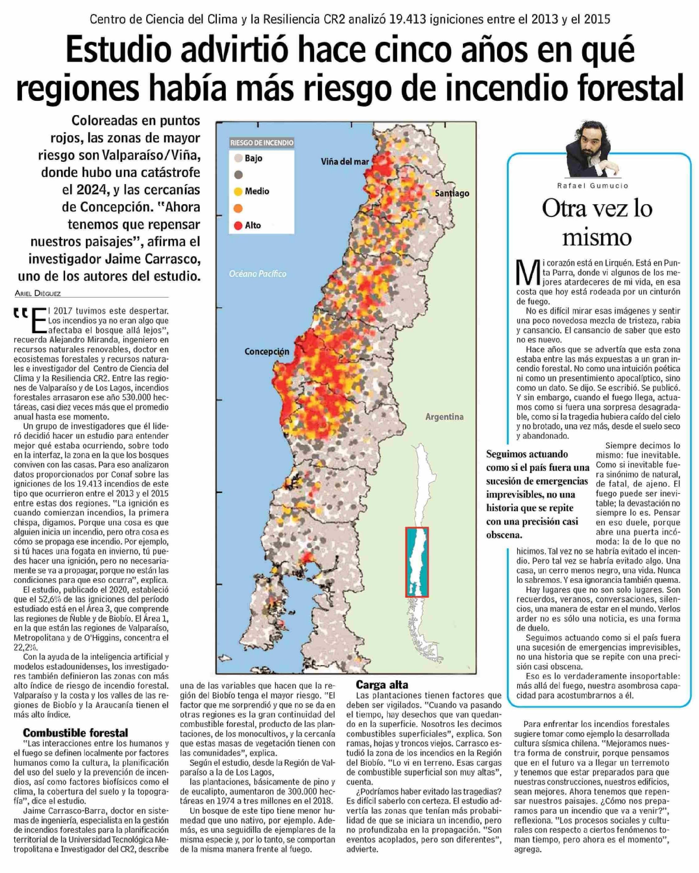 Título: Estudio advirtió hace cinco años en qué regiones había más riesgo de incendio forestal