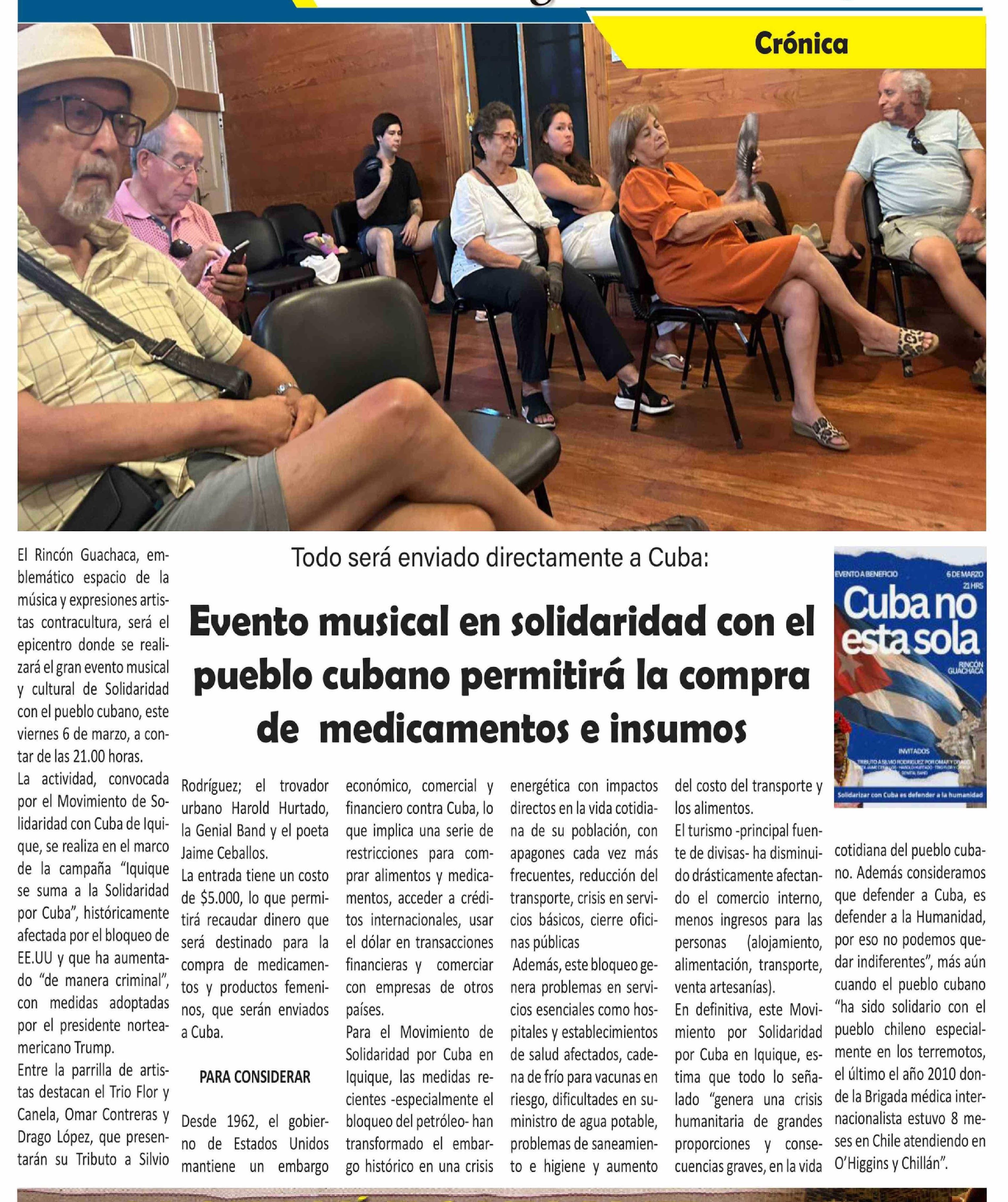 Título: Evento musical en solidaridad con el pueblo cubano permitirá la compra de medicamentos e insumos