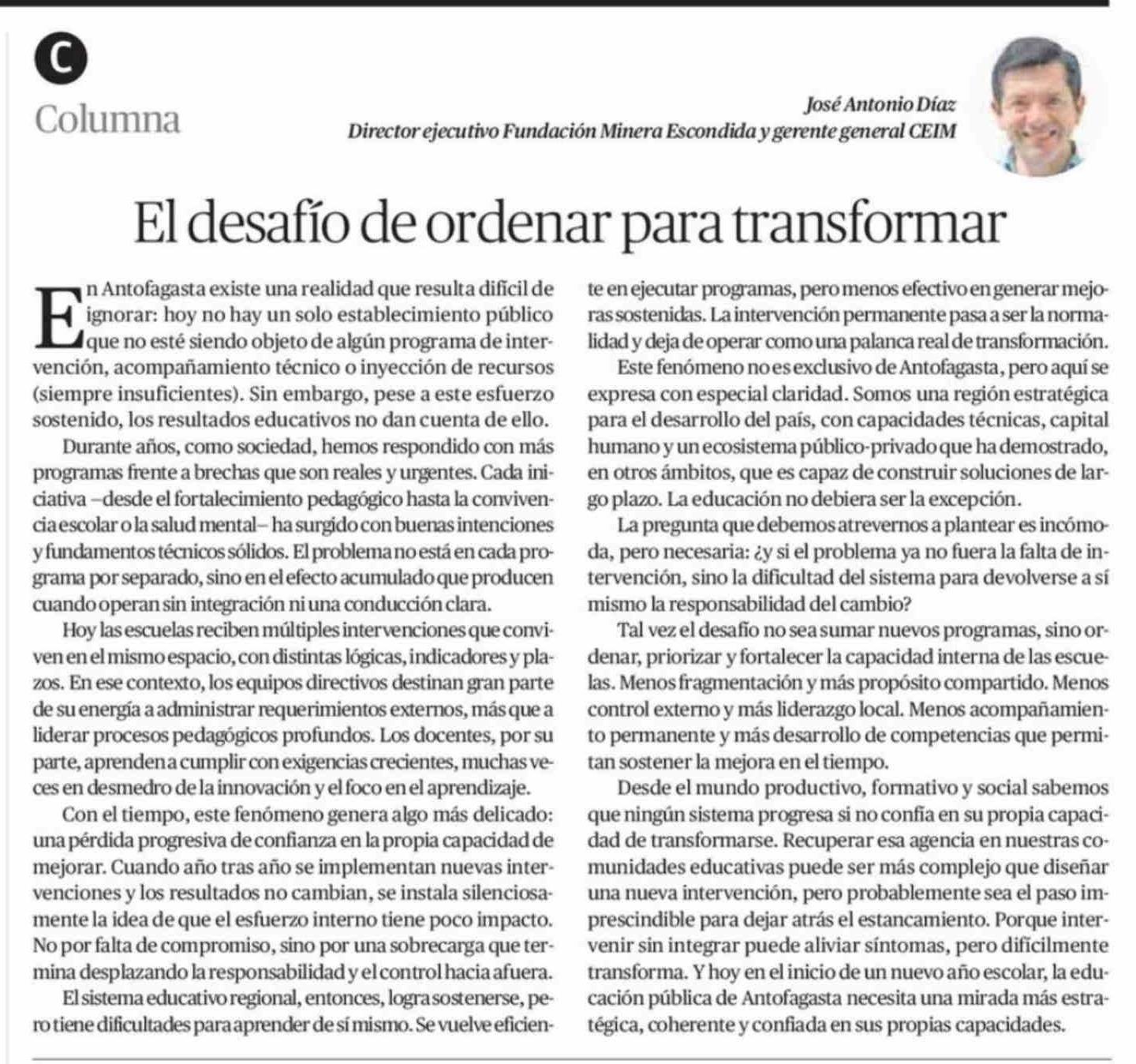 Columnas de Opinión: El desafío de ordenar para transformar 02-03-2026 El Mercurio de Calama |