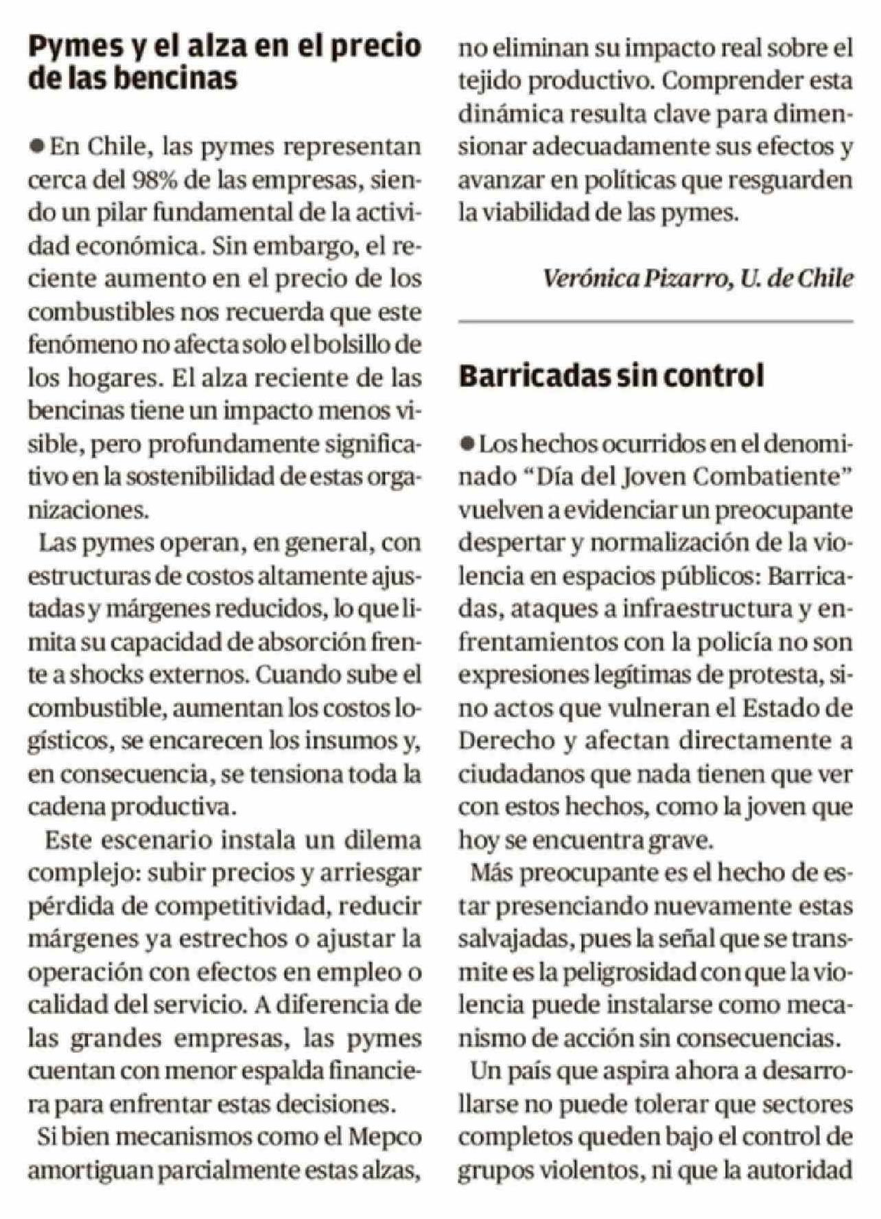 Título: Cartas: Pymes y el alza en el precio de las bencinas