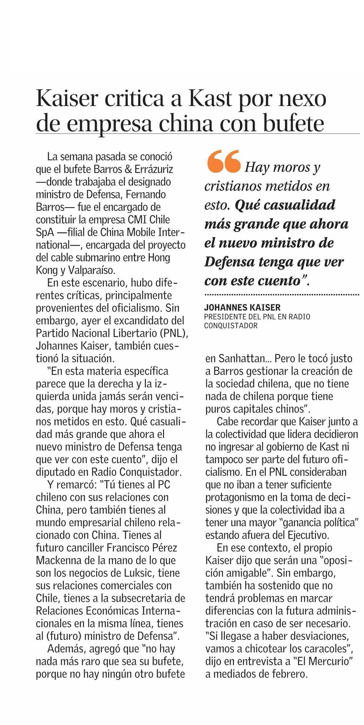Título: Kaiser critica a Kast por nexo de empresa china con bufete