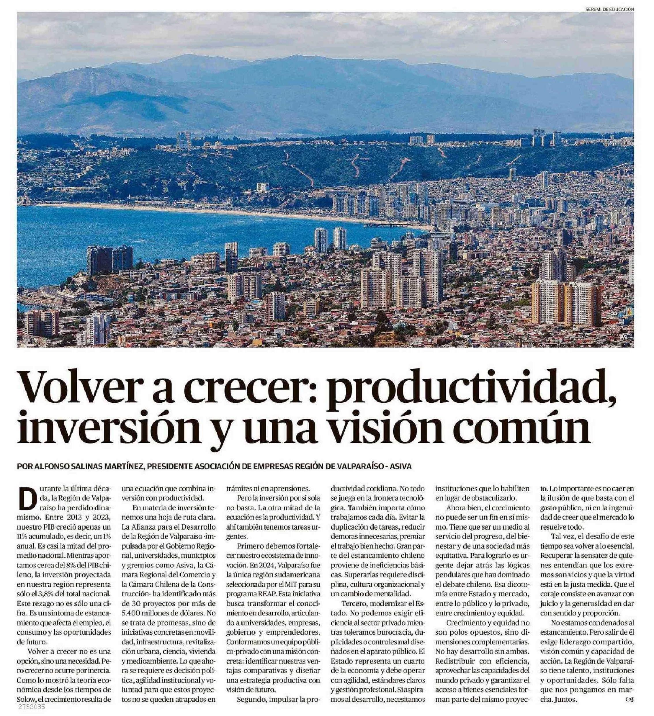 COLUMNAS DE OPINIÓN: productividad, inversión y una visión común 18-06-2025 El Mercurio de Valparaíso |