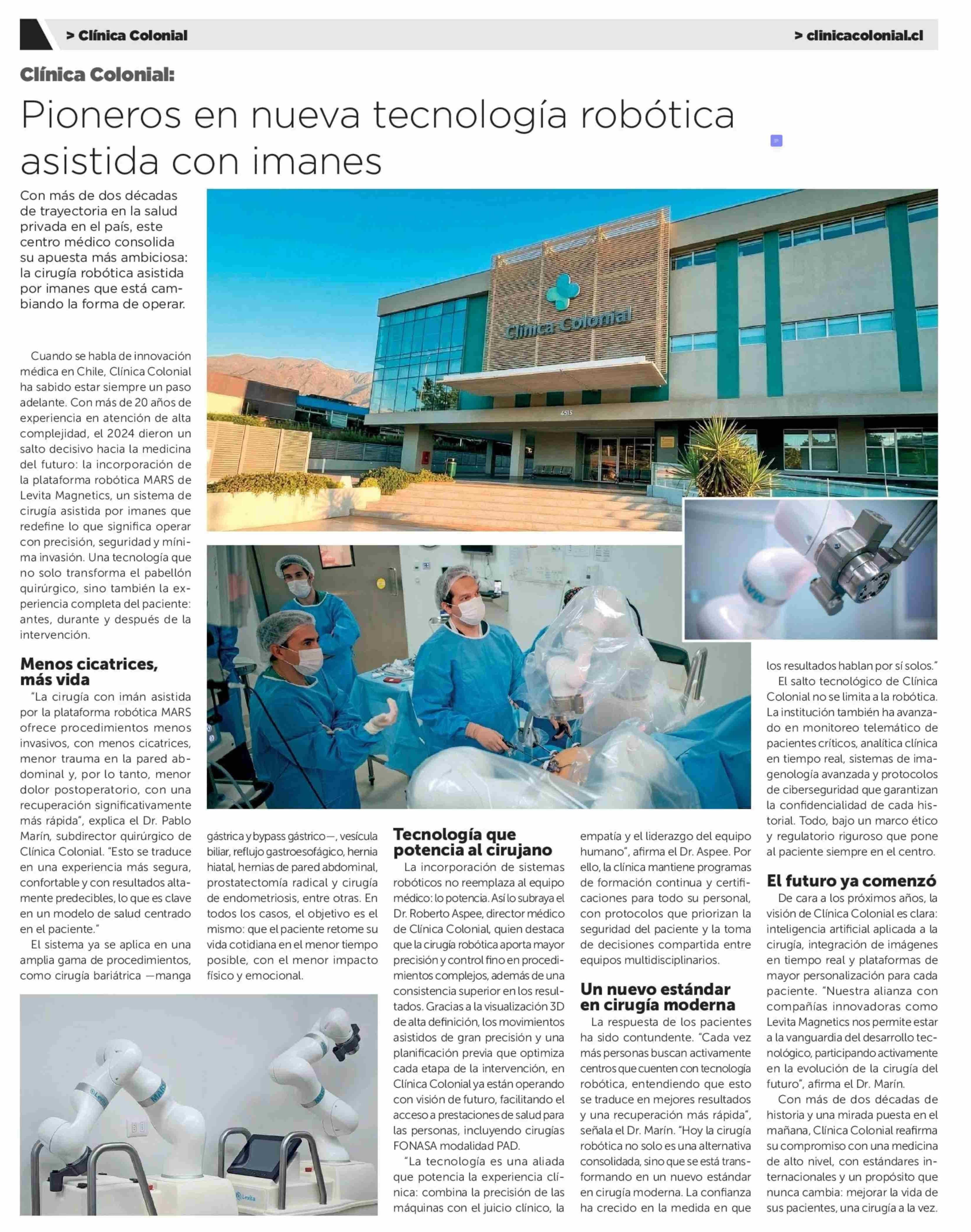 Pioneros en nueva tecnología robótica asistida con imanes 18-04-2026 La Tercera |