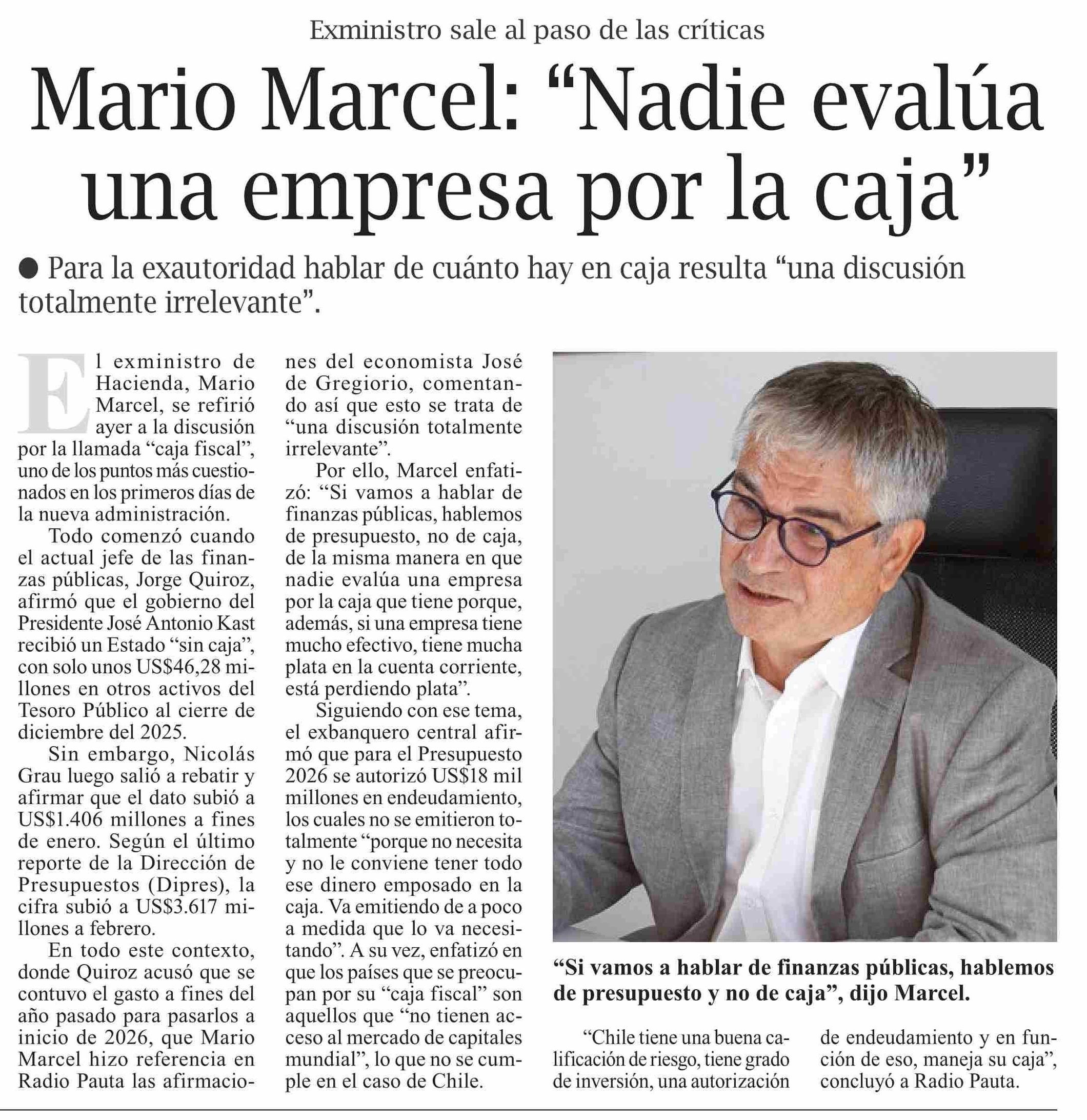 Mario Marcel: “Nadie evalúa una empresa por la caja” 02-04-2026 El Pingüino |