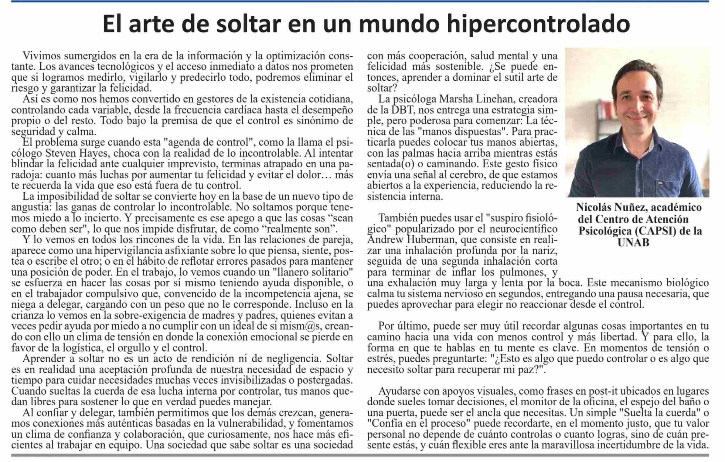 | Título: | Columnas de Opinión: El arte de soltar en un mundo hipercontrolado |