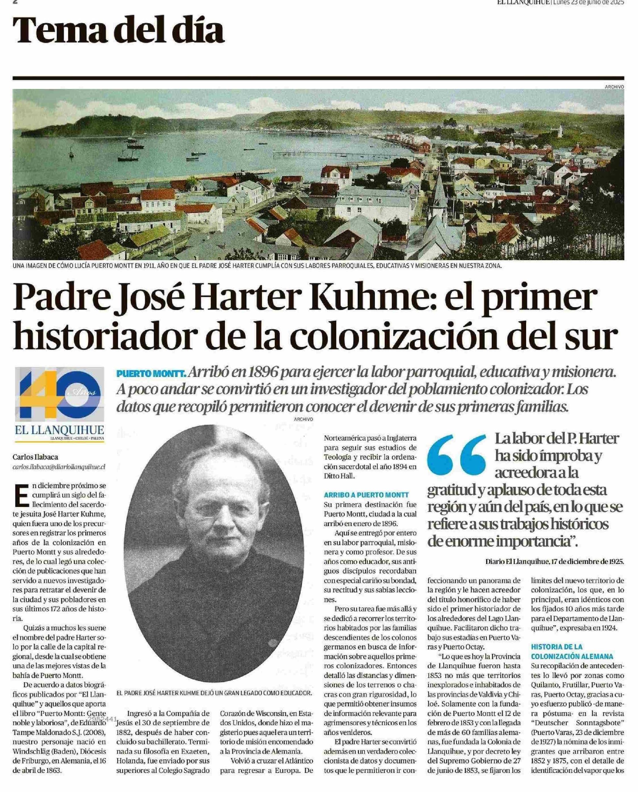 Padre José Harter Kuhme: el primer historiador de la colonización del sur 23-06-2025 El Llanquihue |