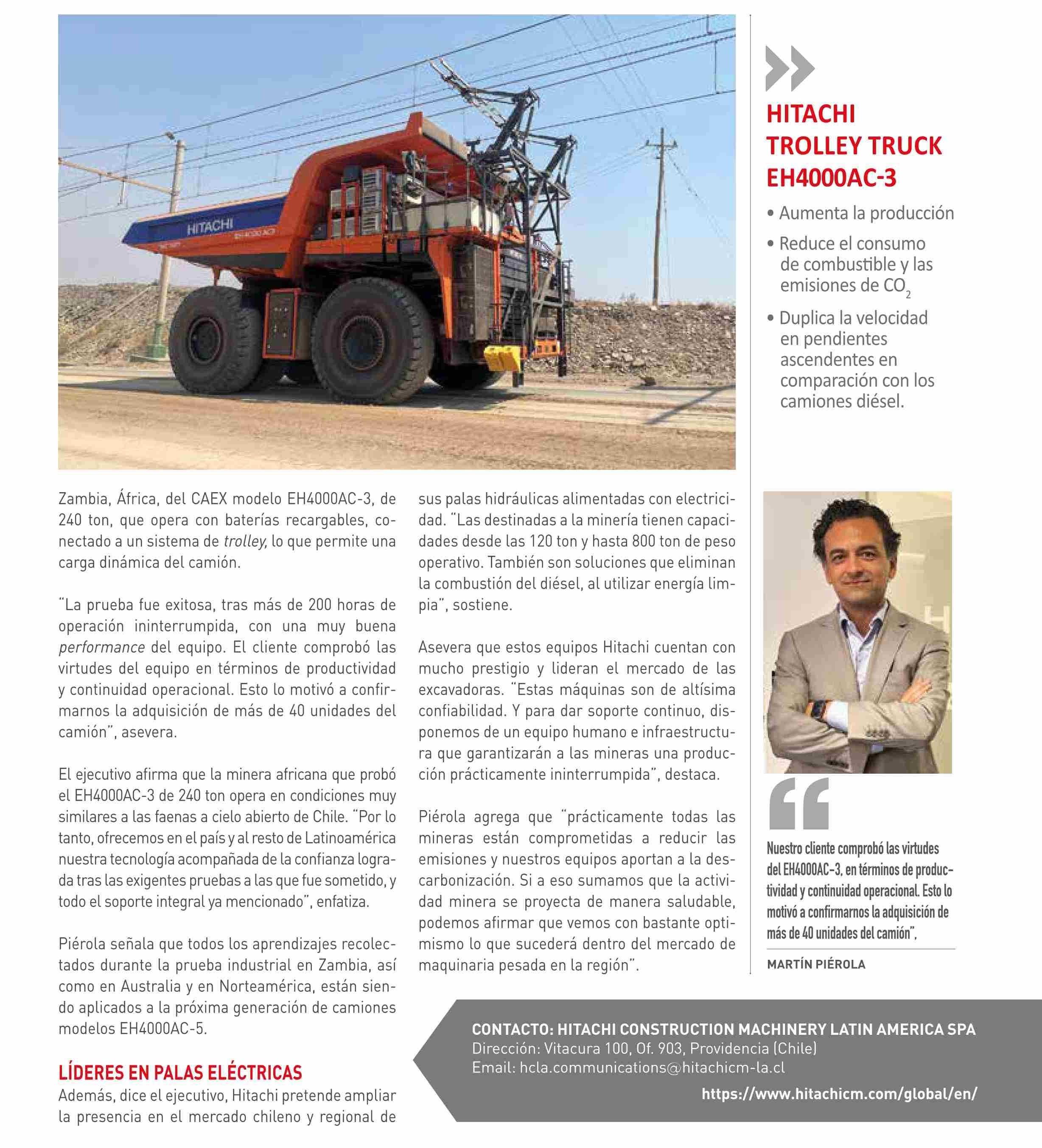 Título: HITACHI APORTAA LA DESCARBONIZACIÓN A TRAVÉS DE SUS CAEX-TROLLEY BATTERY Y PALAS ELÉCTRICAS