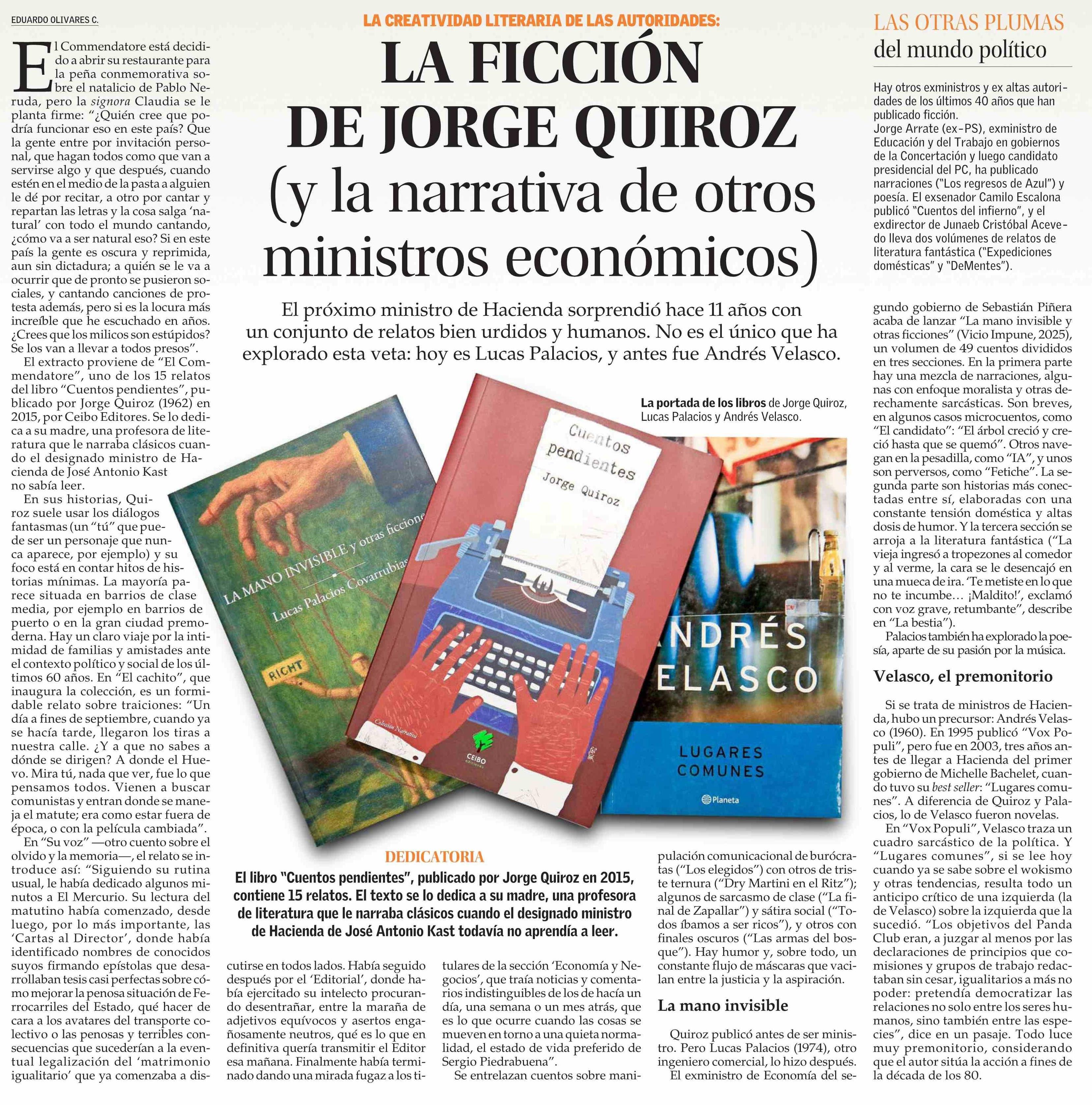 LA FICCIÓN DE JORGE QUIROZ (y la narrativa de otros ministros económicos) 07-02-2026 El Mercurio |