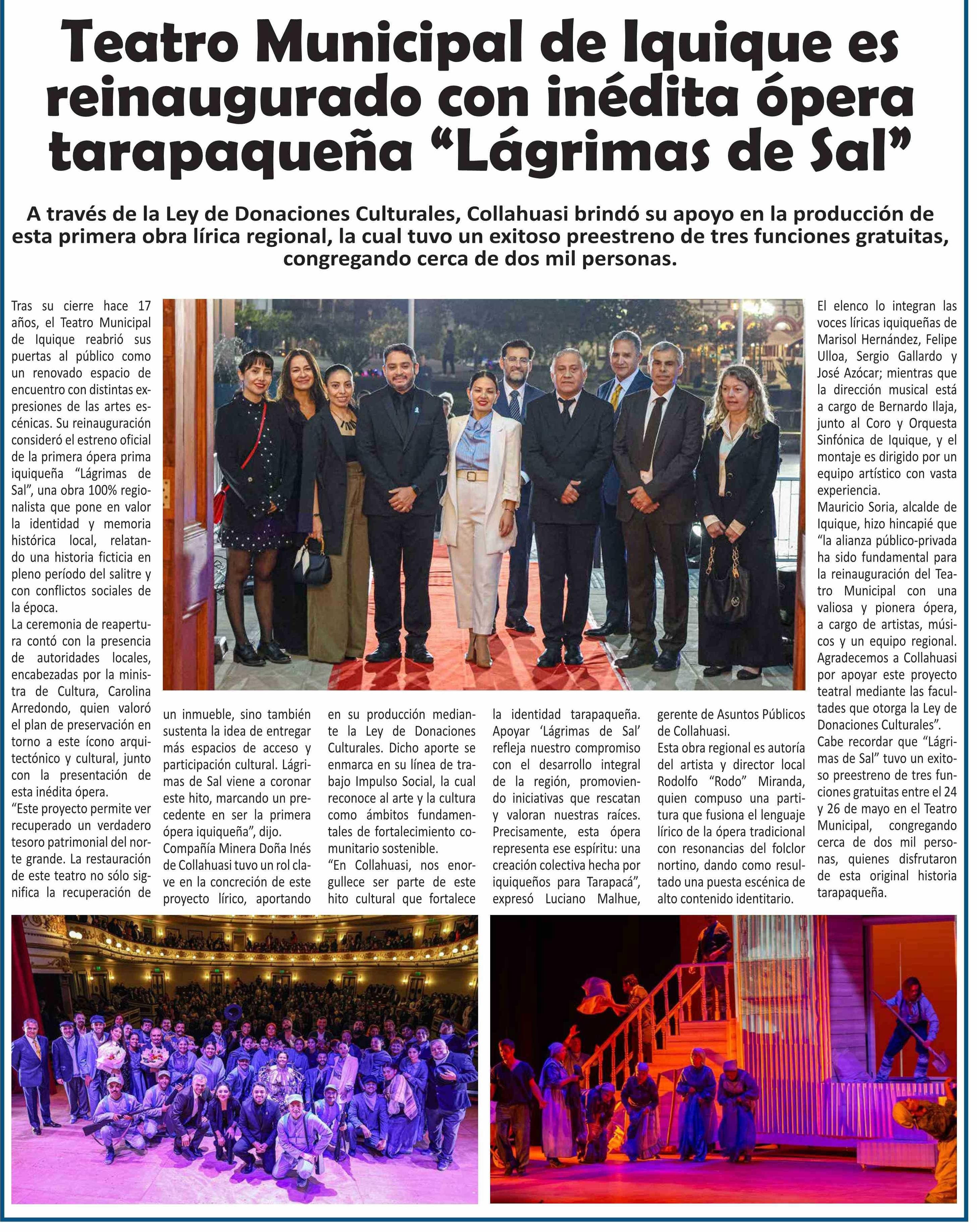 Título: Teatro Municipal de Iquique es reinaugurado con inédita ópera tarapaqueña “Lágrimas de Sal”