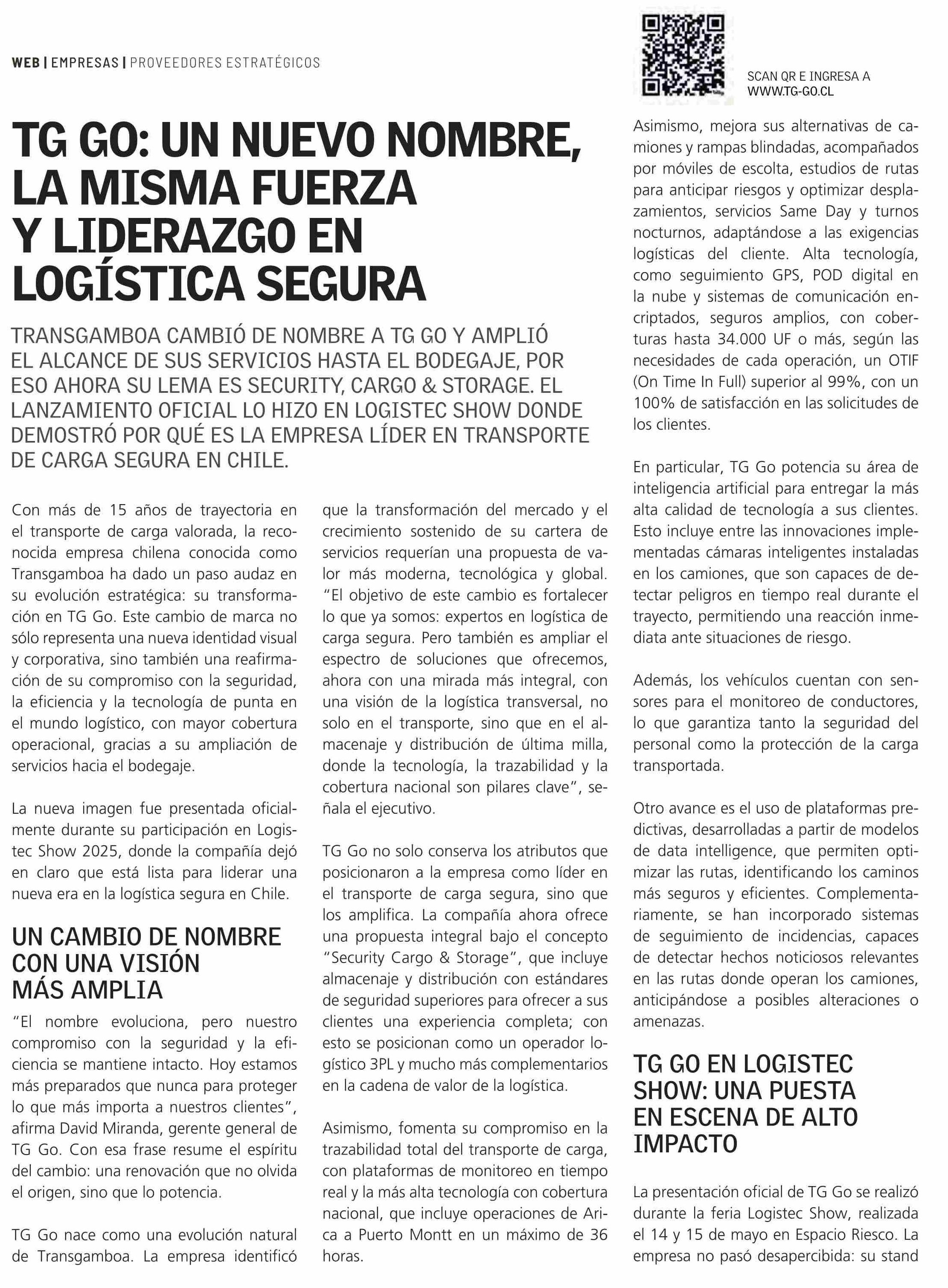 TG GO: UN NUEVO NOMBRE, LA MISMA FUERZA Y LIDERAZGO EN LOGÍSTICA SEGURA 17-06-2025 Revista Logistec |