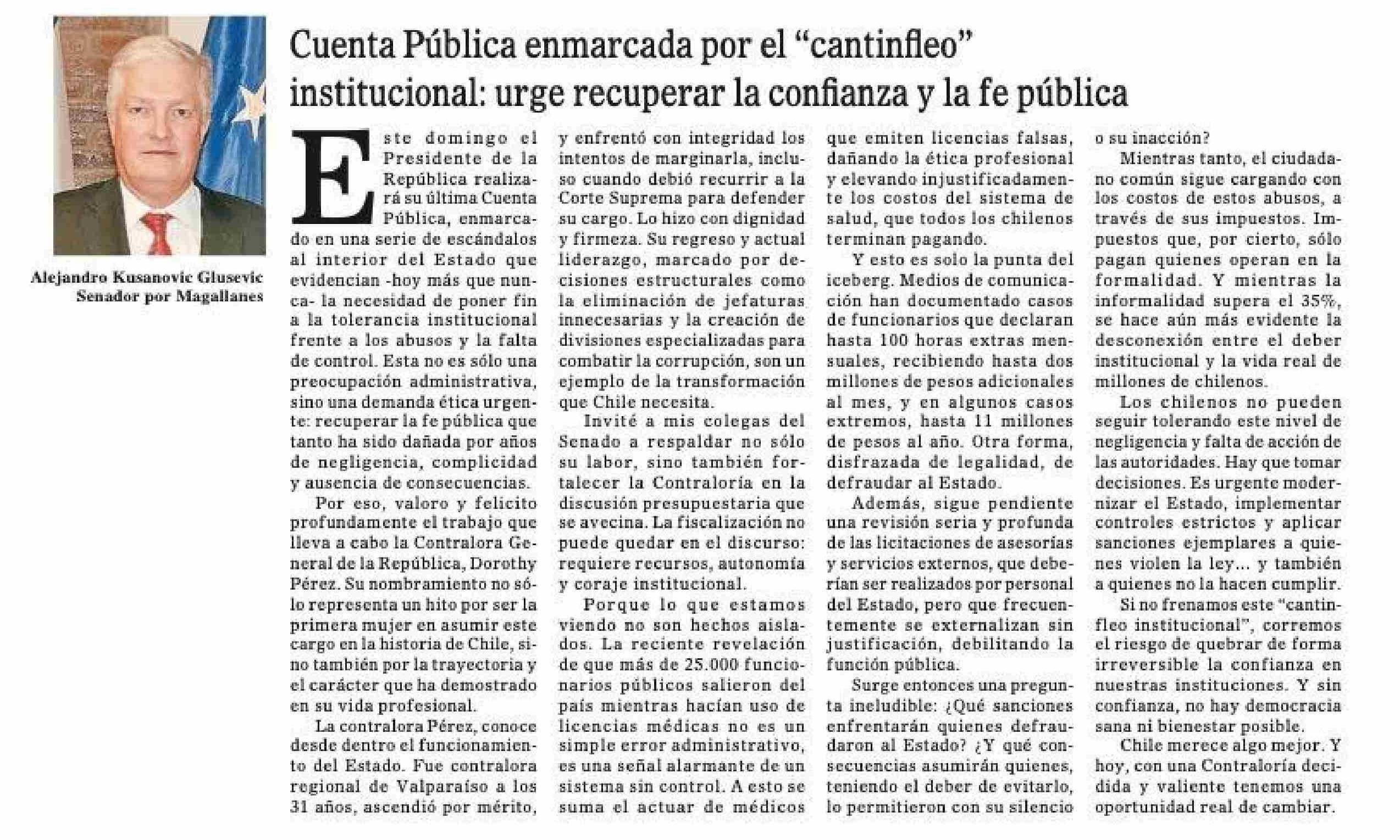 Fecha: 01-06-2025 Sector: Columnas de Opinión Región: Región de Magallanes y de la Antártica Chilena