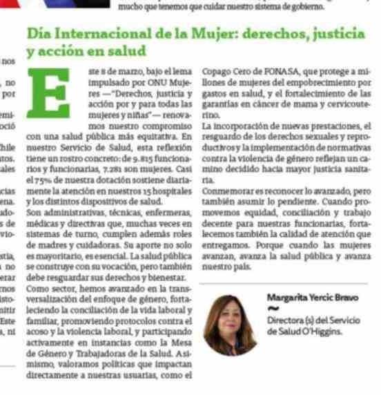 | Título: | Columnas de Opinión: Día Internacional de la Mujer: derechos, justicia y acción en salud |