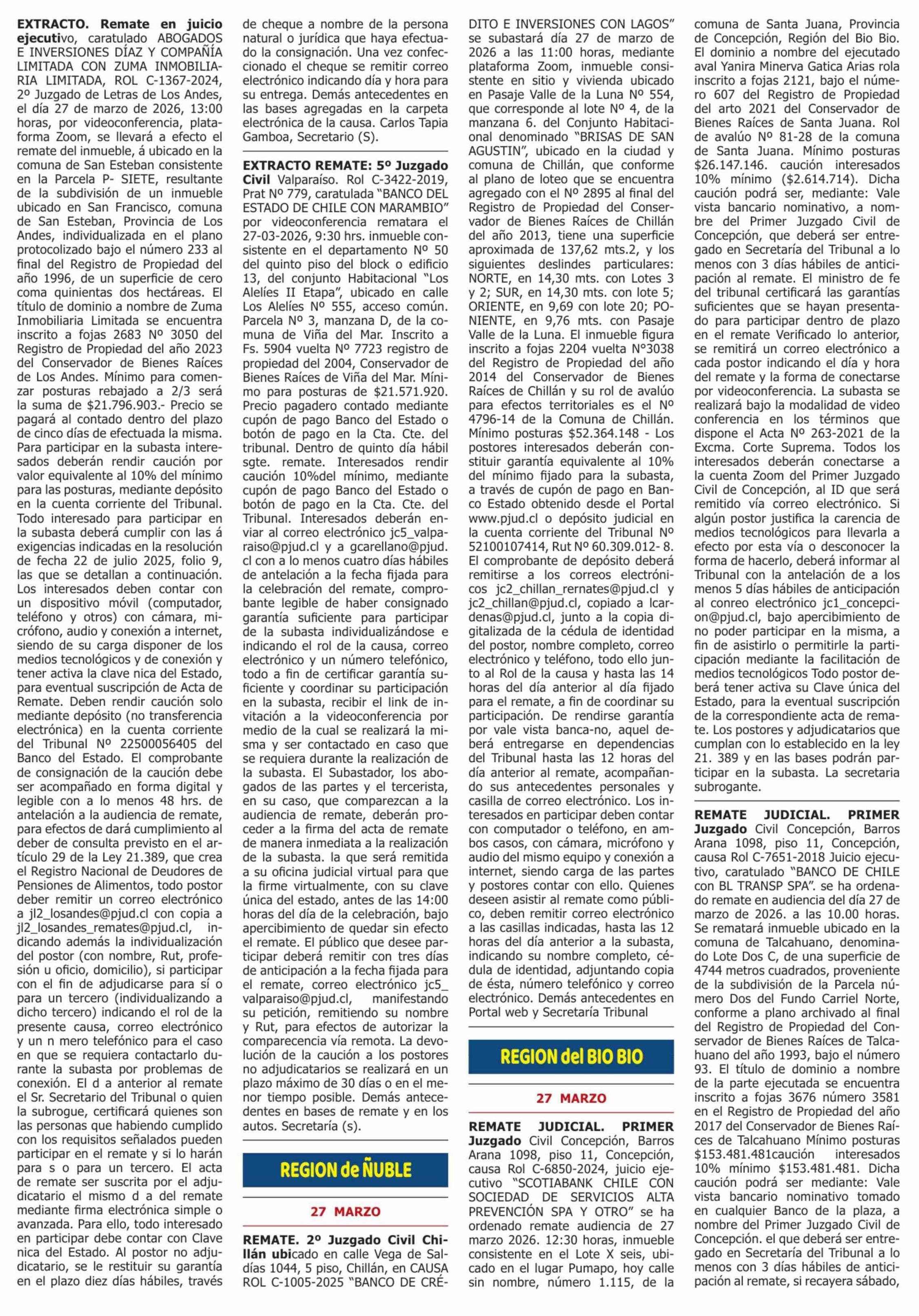 | Título: | Remates: REMATES de PROPIEDADES (ORDENADOS por REGIONES) |