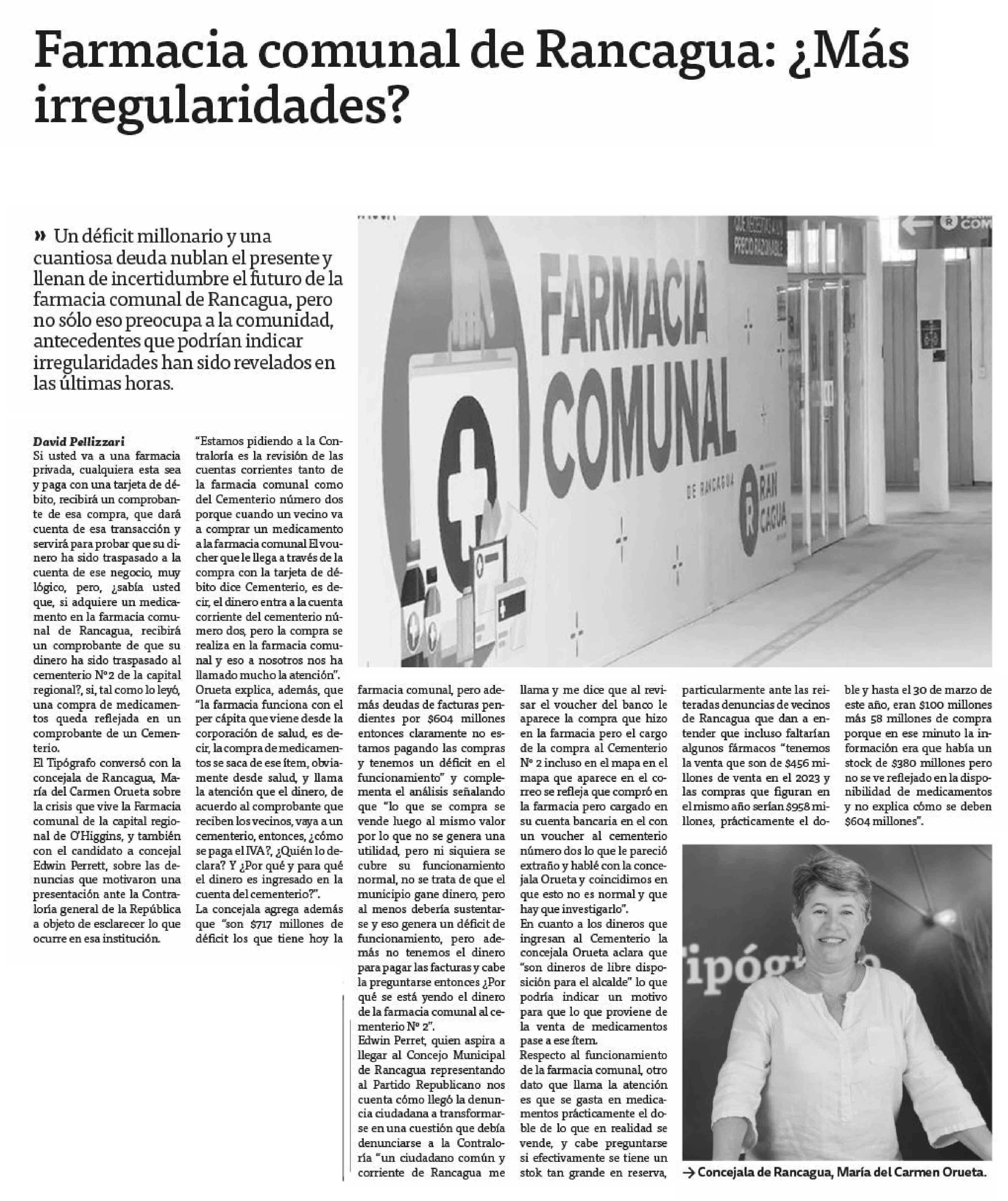 Farmacia comunal de Rancagua: ¿Más irregularidades? 03-06-2024 El Tipógrafo |
