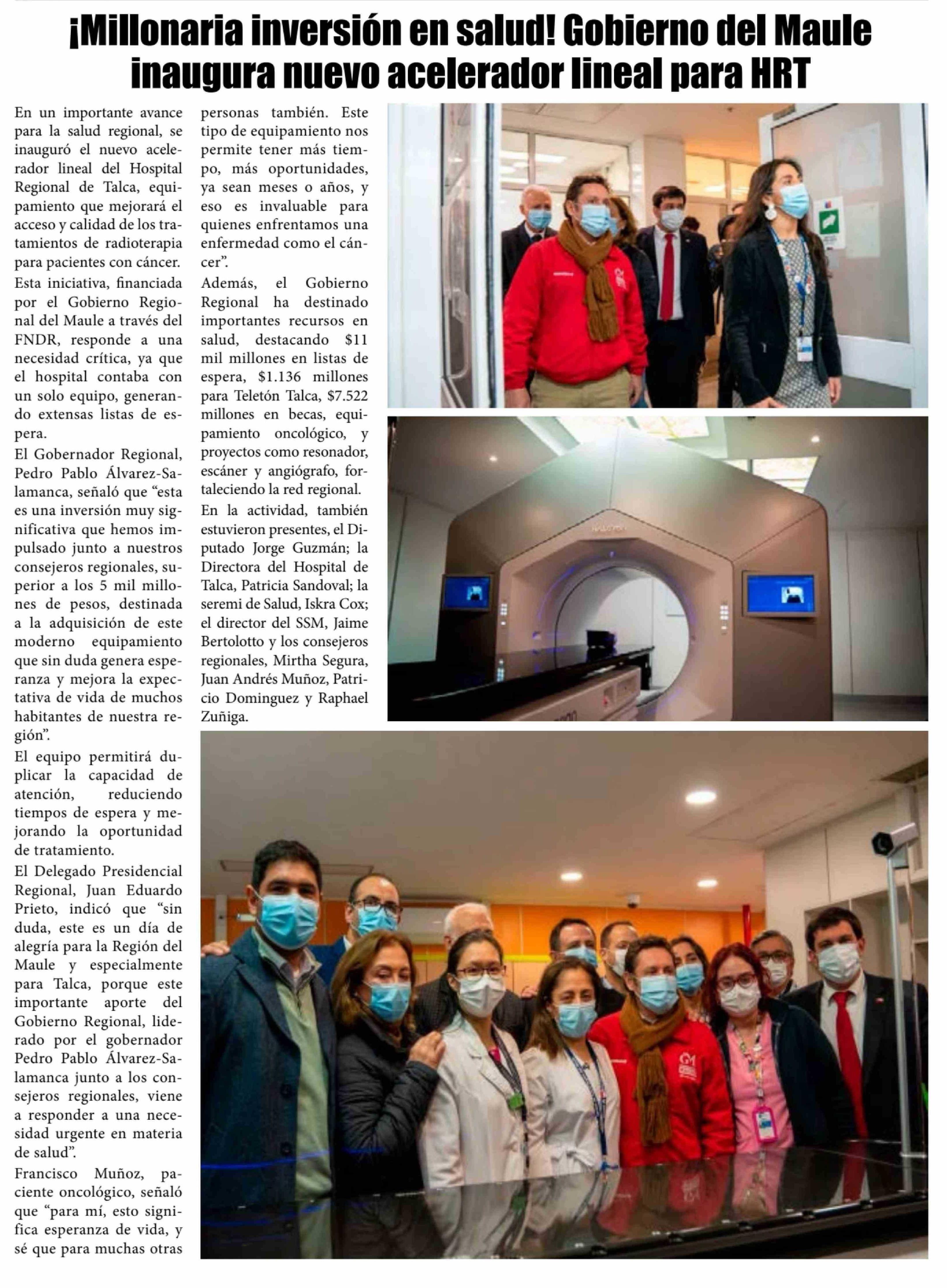 Título: ¡Millonaria inversión en salud! Gobierno del Maule inaugura nuevo acelerador lineal para HRT