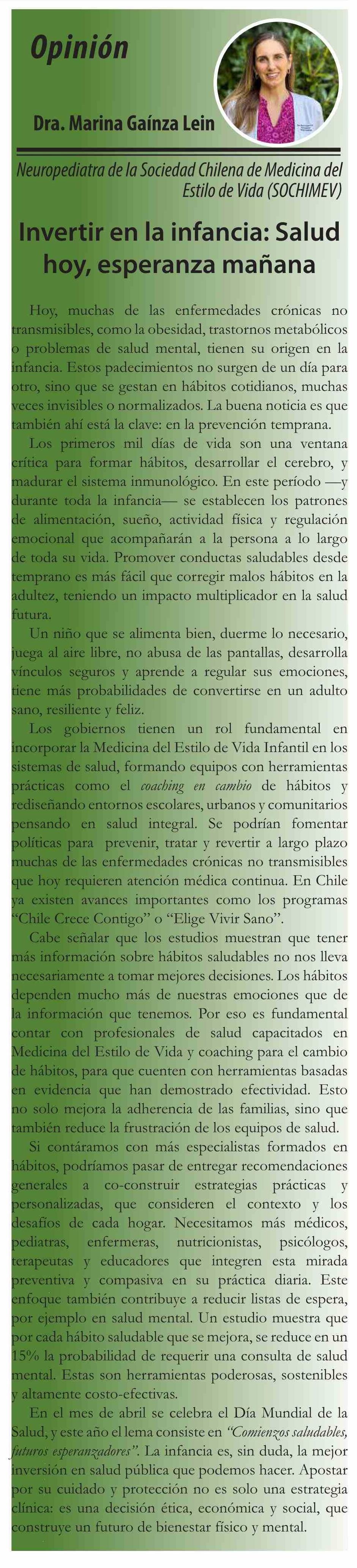 Columnas de Opinión: Invertir en la infancia: Salud hoy, esperanza mañana 14-04-2025 El Divisadero |