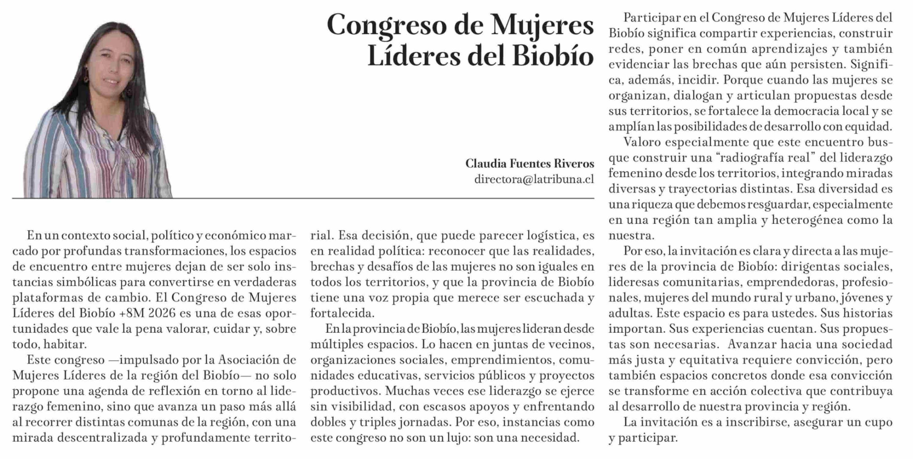 Título: Columnas de Opinión: Congreso de Mujeres Líderes del Biobío