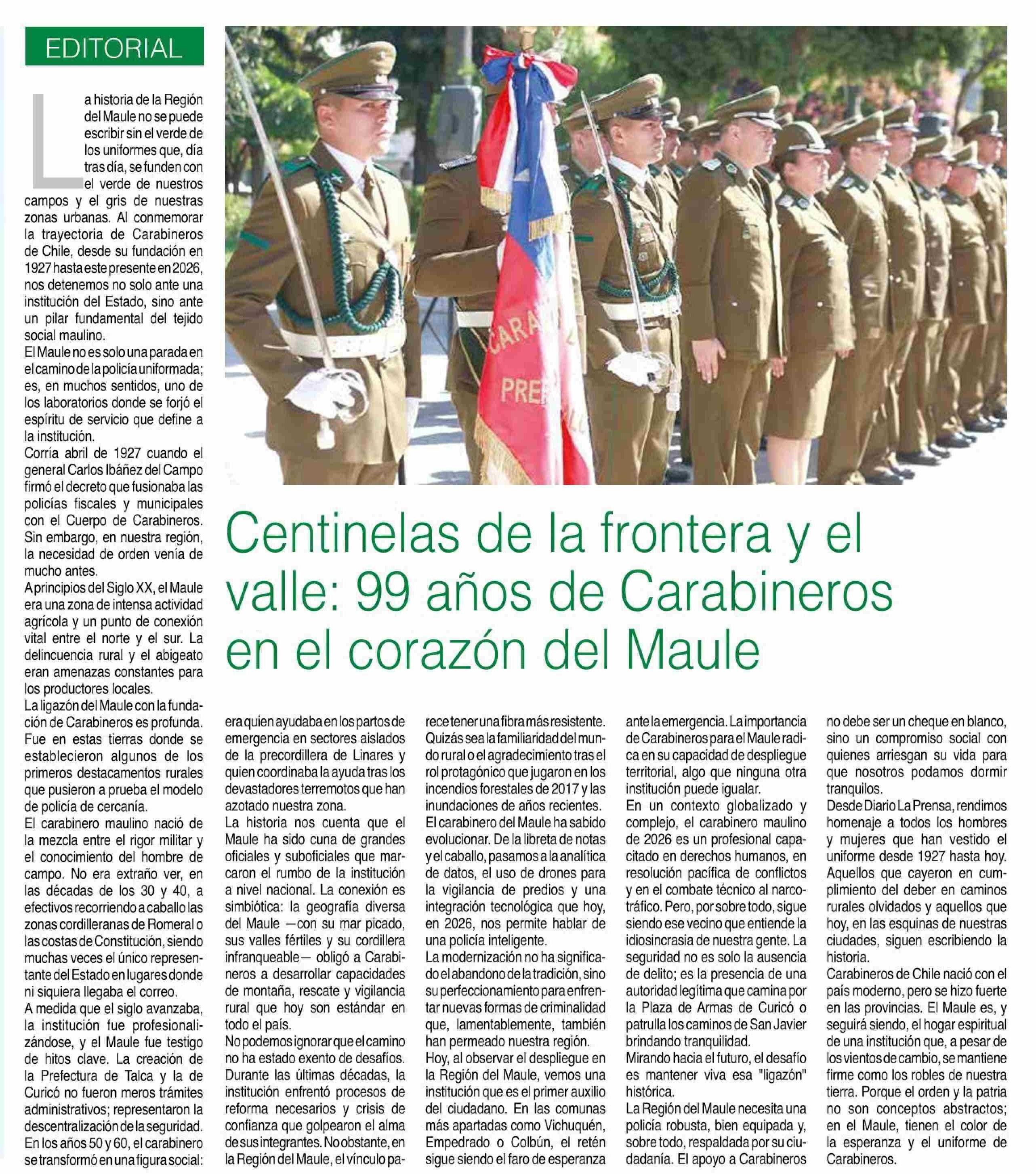 Título: EDITORIAL: Centinelas de la frontera y el valle: 99 años de Carabineros en el corazón del Maule