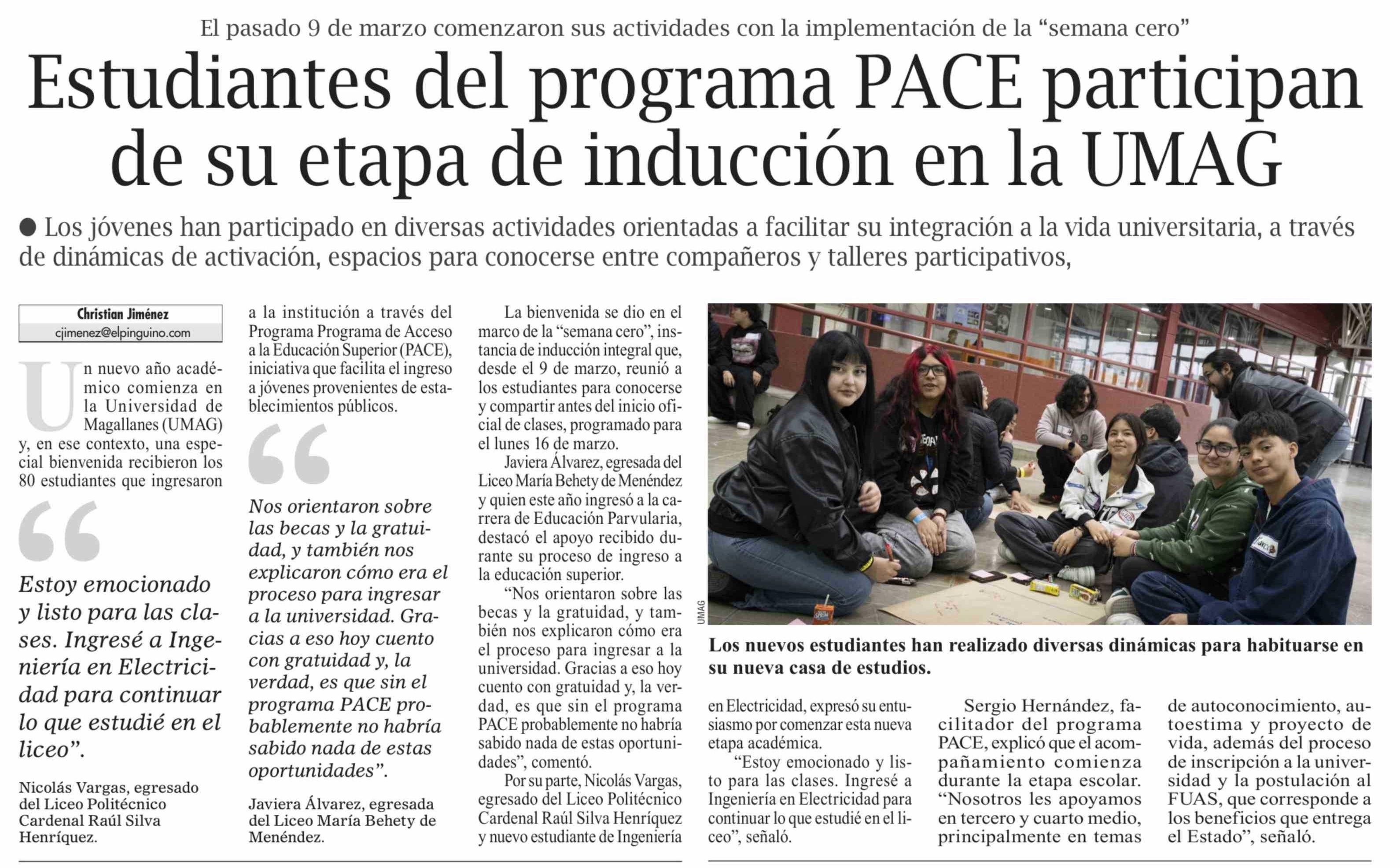 Estudiantes del programa PACE participan de su etapa de inducción en la UMAG 12-03-2026 El Pingüino |