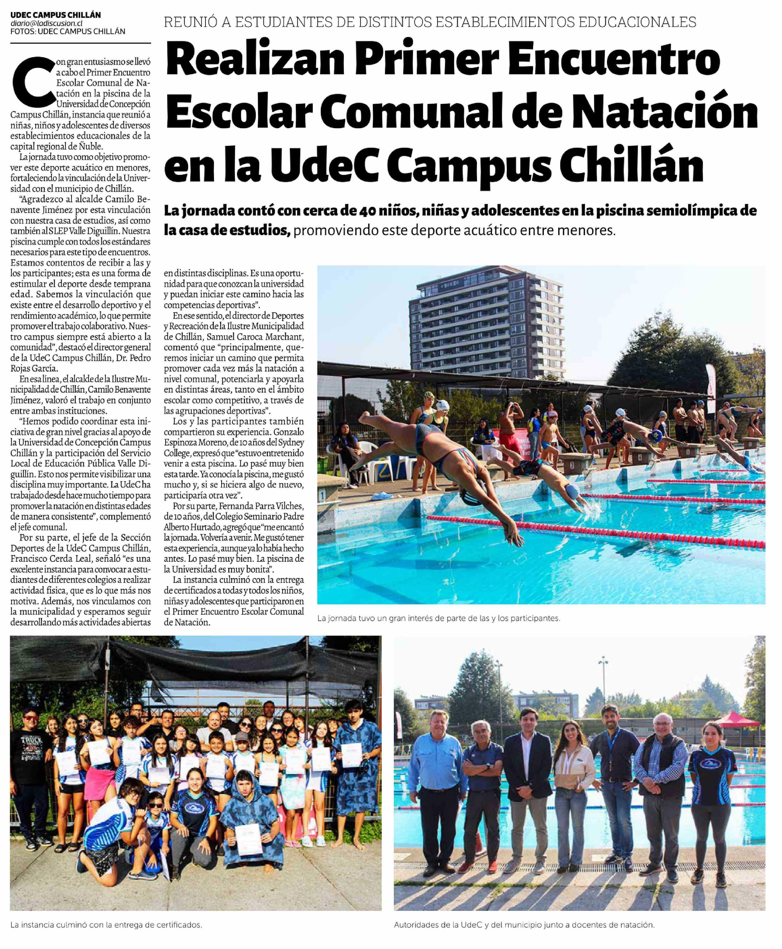 Realizan Primer Encuentro Escolar Comunal de Natación en la UdeC Campus Chillán 12-04-2026 La Discusión |