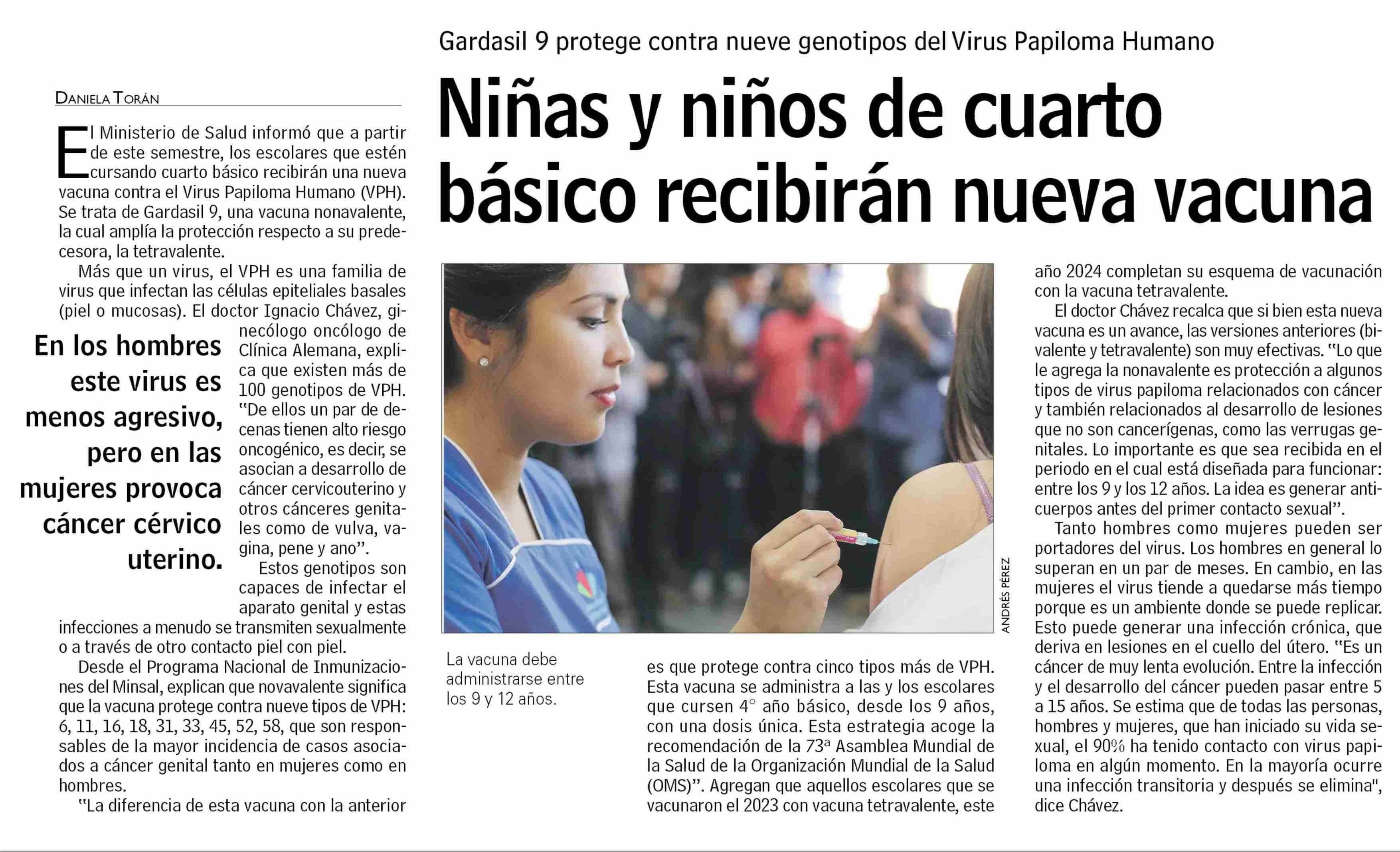 Niñas y niños de cuarto - básico recibirán nueva vacuna 20-08-2024 Las Últimas Noticias |