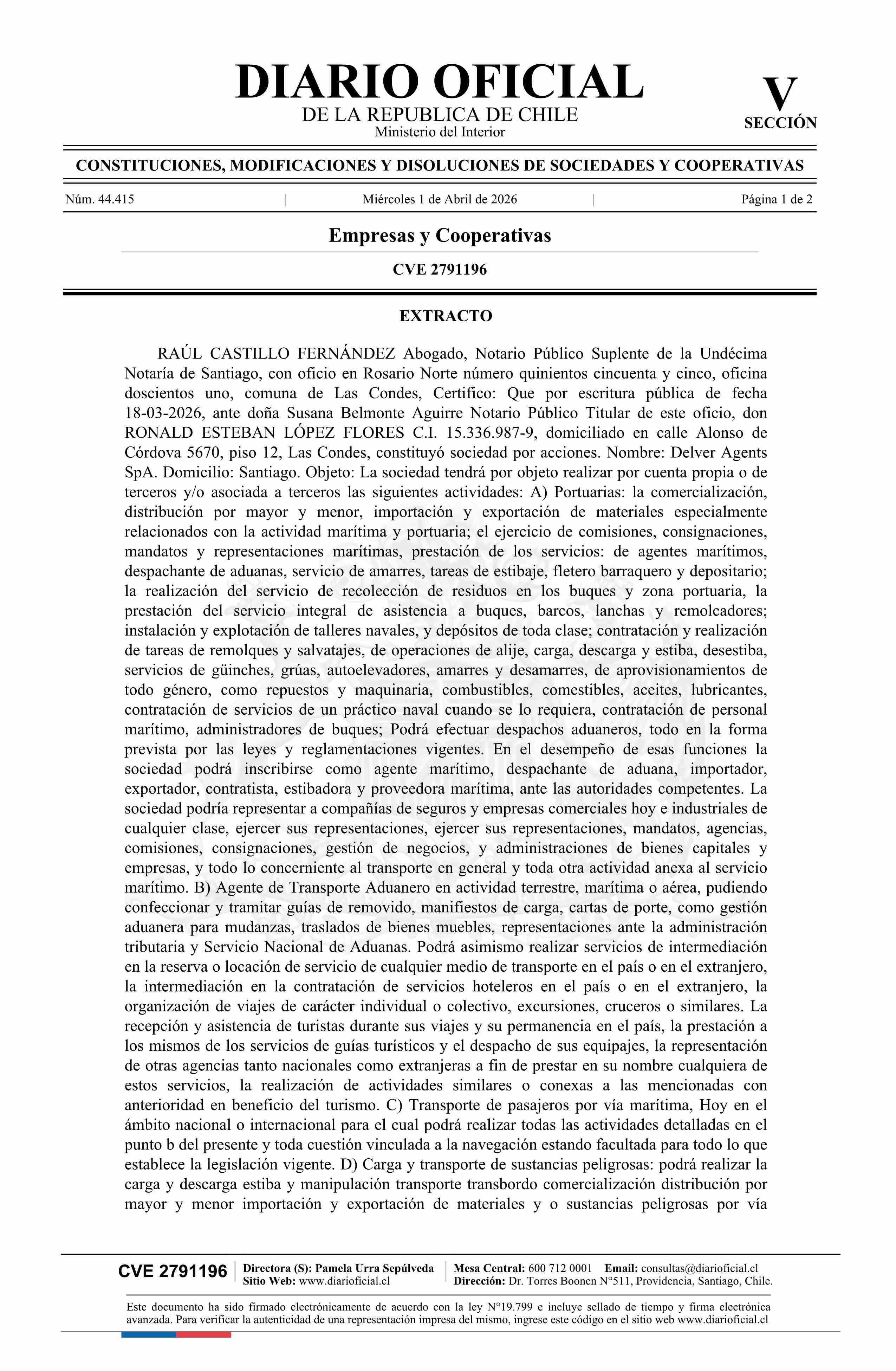 Fuente: Diario Oficial Edición Electrónica (Diario Oficial de Chile - 5 Empresas Y Cooper) Página(s): 24-25