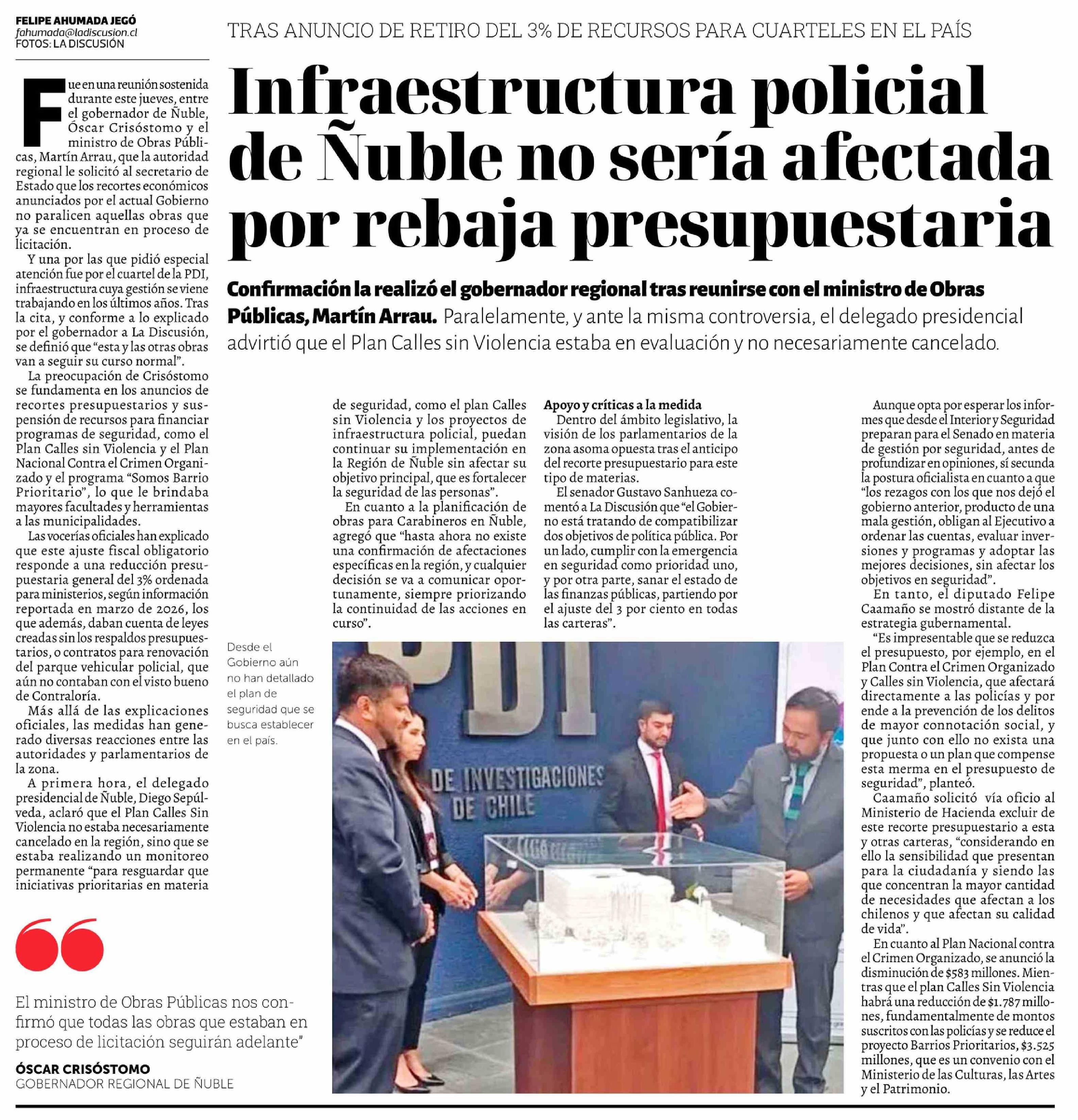 Infraestructura policial de Ñuble no sería afectada por rebaja presupuestaria 27-03-2026 La Discusión |