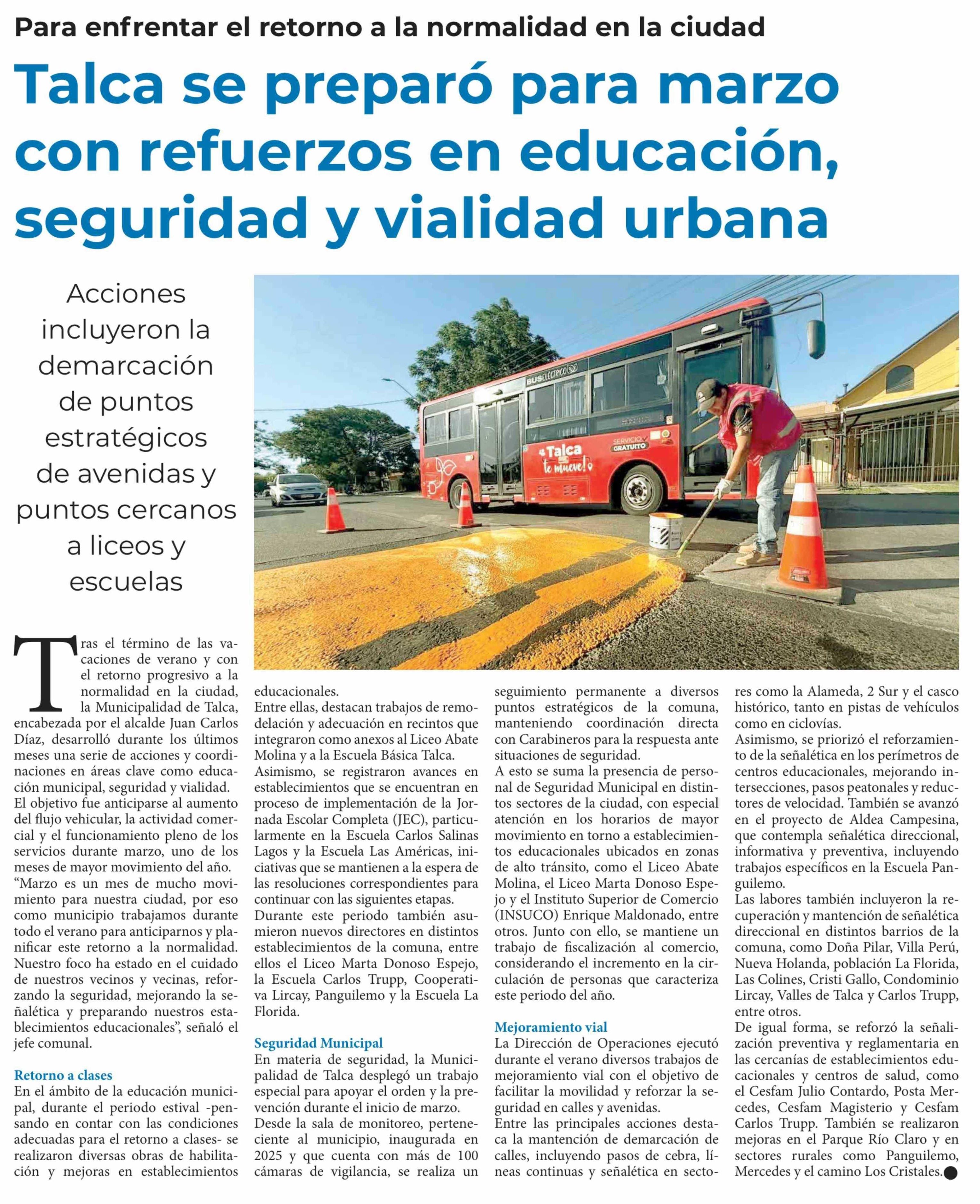 Título: Talca se preparó para marzo con refuerzos en educación, seguridad y vialidad urbana