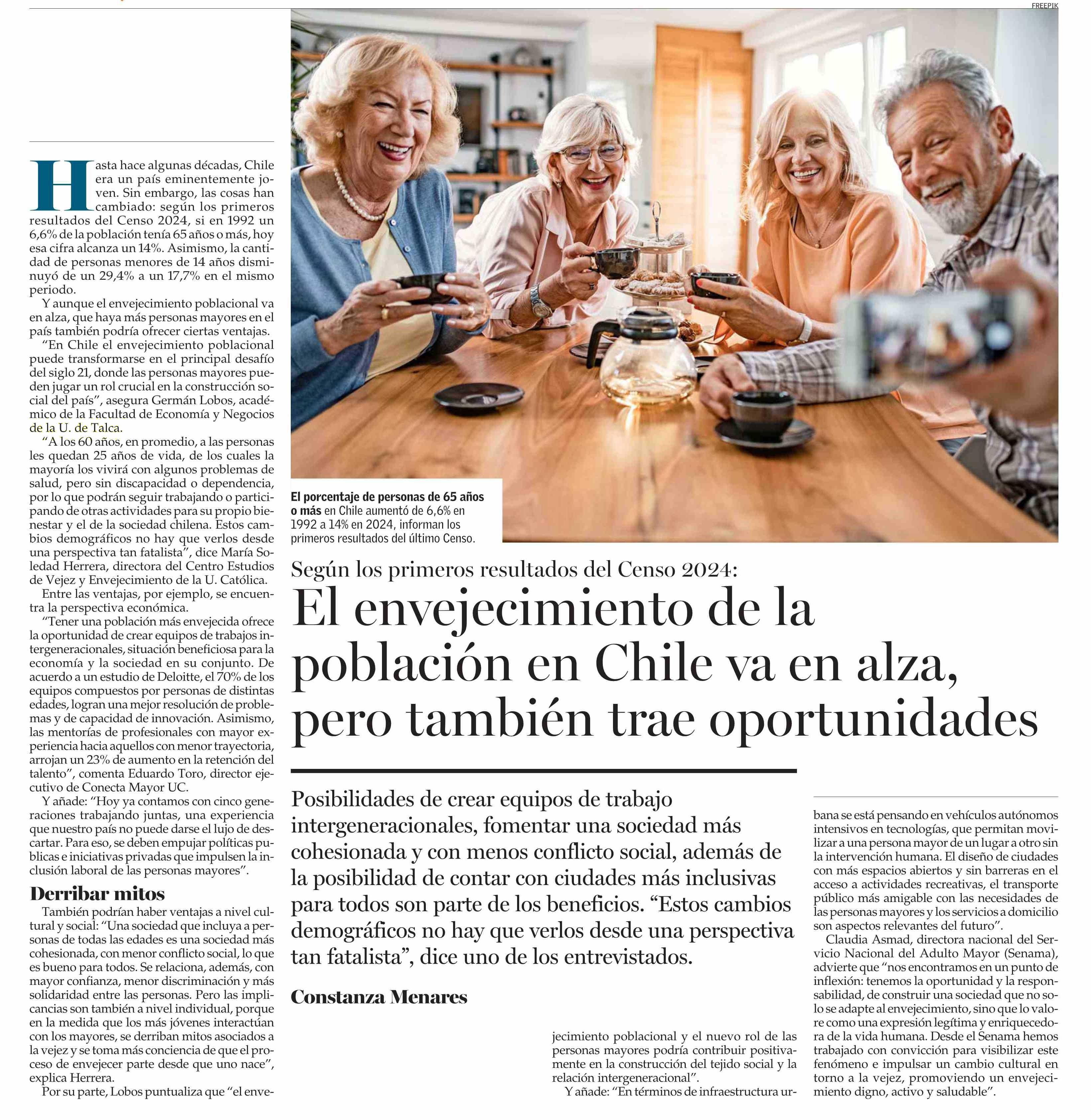 El envejecimiento de la población en Chile va en alza, pero tambien trae oportunidades 21-04-2025 El Mercurio |