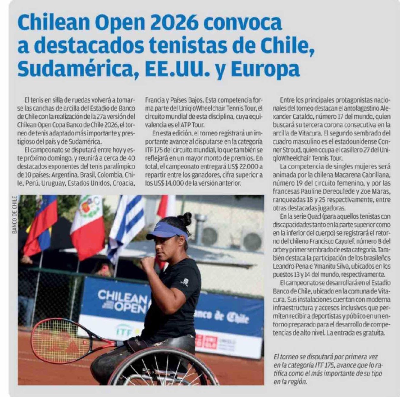 | Título: | Chilean Open 2026 convoca a destacados tenistas de Chile, Sudamérica, EE.UU. y Europa |