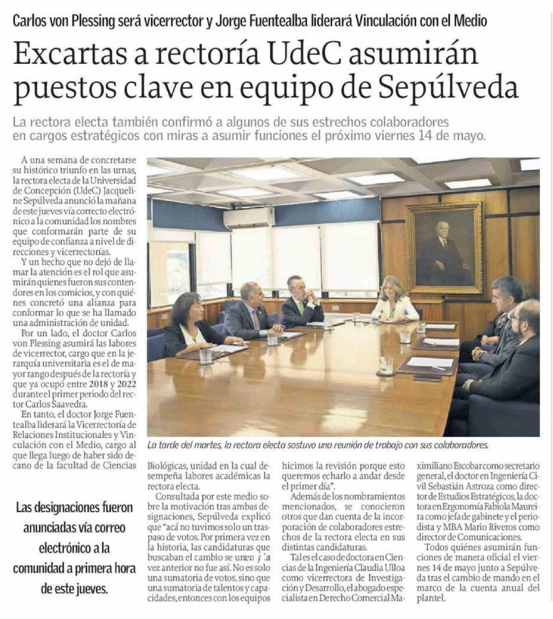 Excartas a rectoría UdeC asumirán puestos clave en equipo de Sepúlveda 17-04-2026 El Sur |