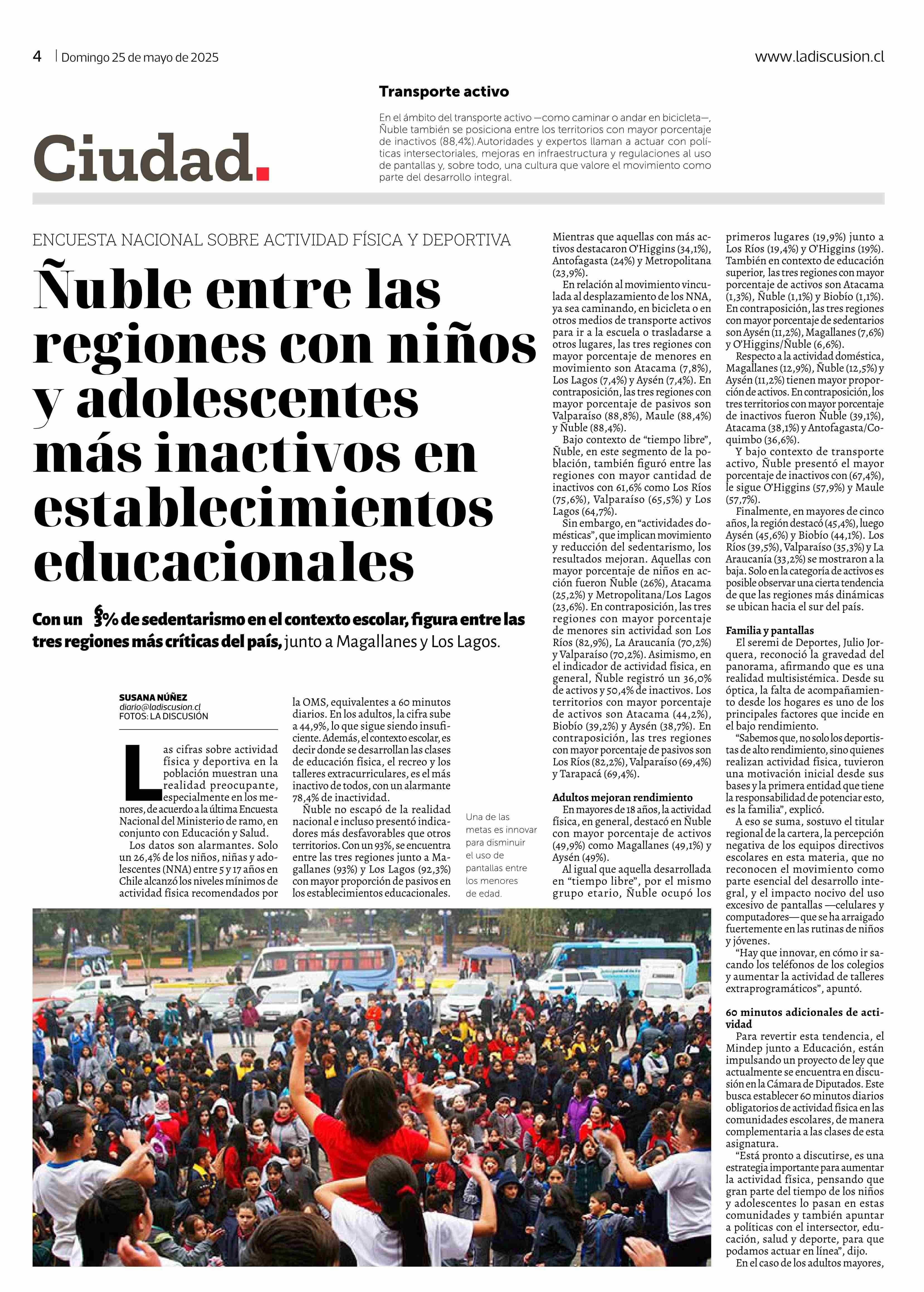 Ñuble entre las regiones con niños y adolescentes más inactivos en establecimientos educacionales 26-05-2025 La Discusión |