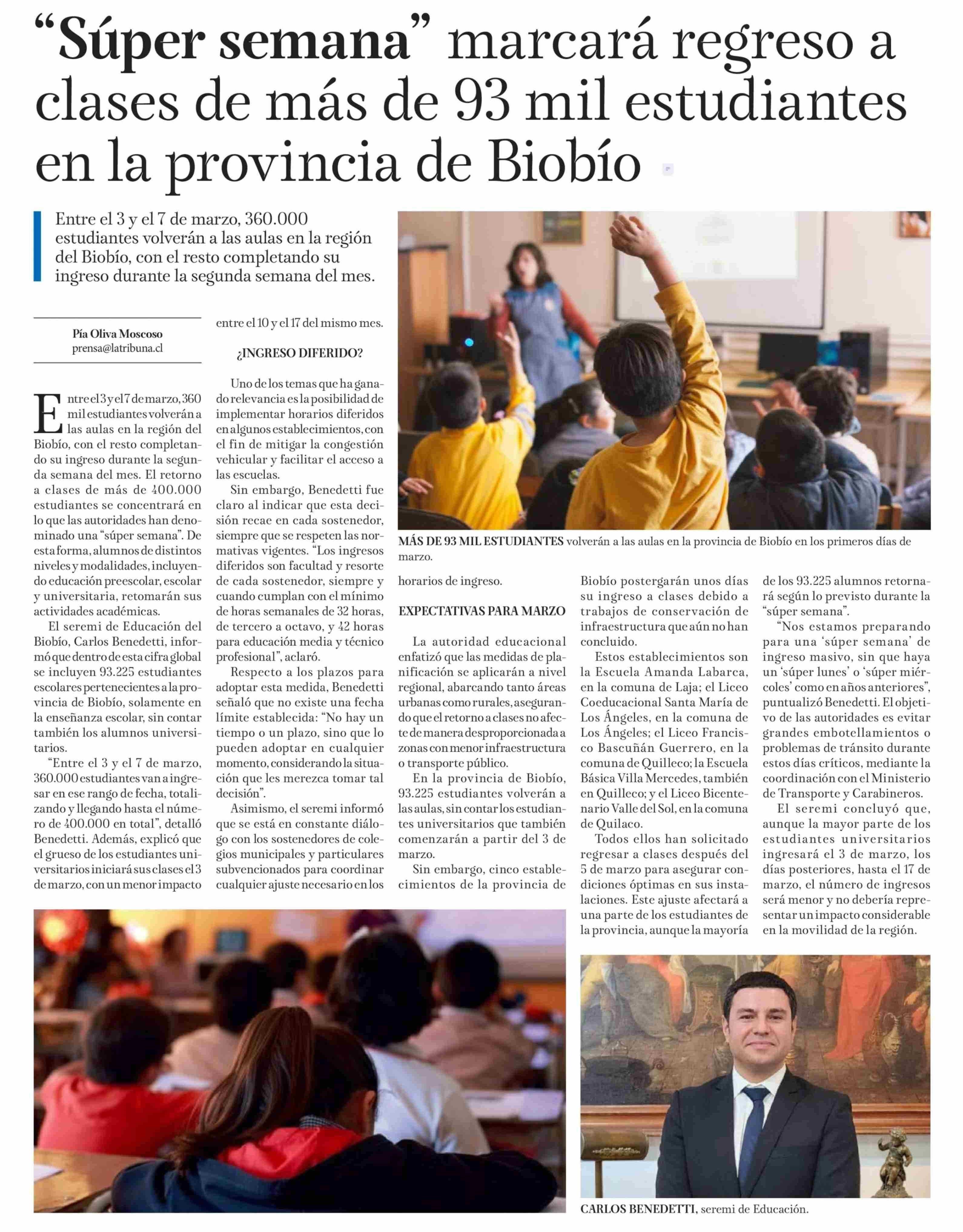 Título: “Súper semana” marcará regreso a clases de más de 93 mil estudiantes en la provincia de Biobío
