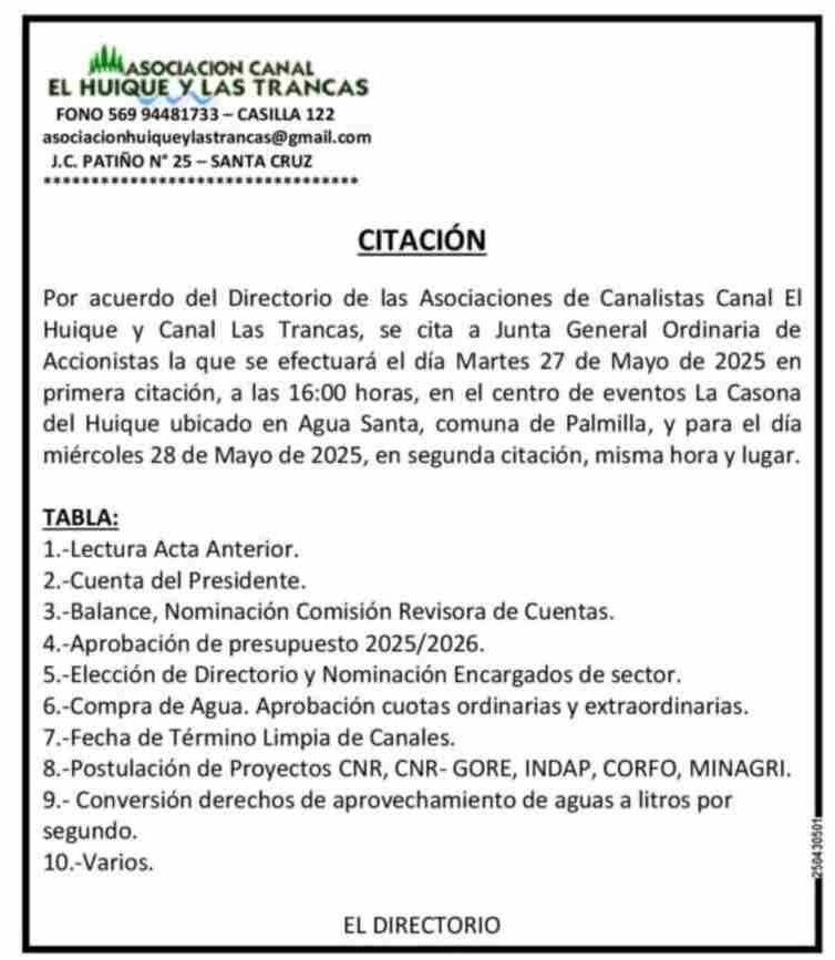 | Fecha: | 02-05-2025 | Sector: | Noticia general | Región: | Región del Libertador General Bernardo O'Higgins |