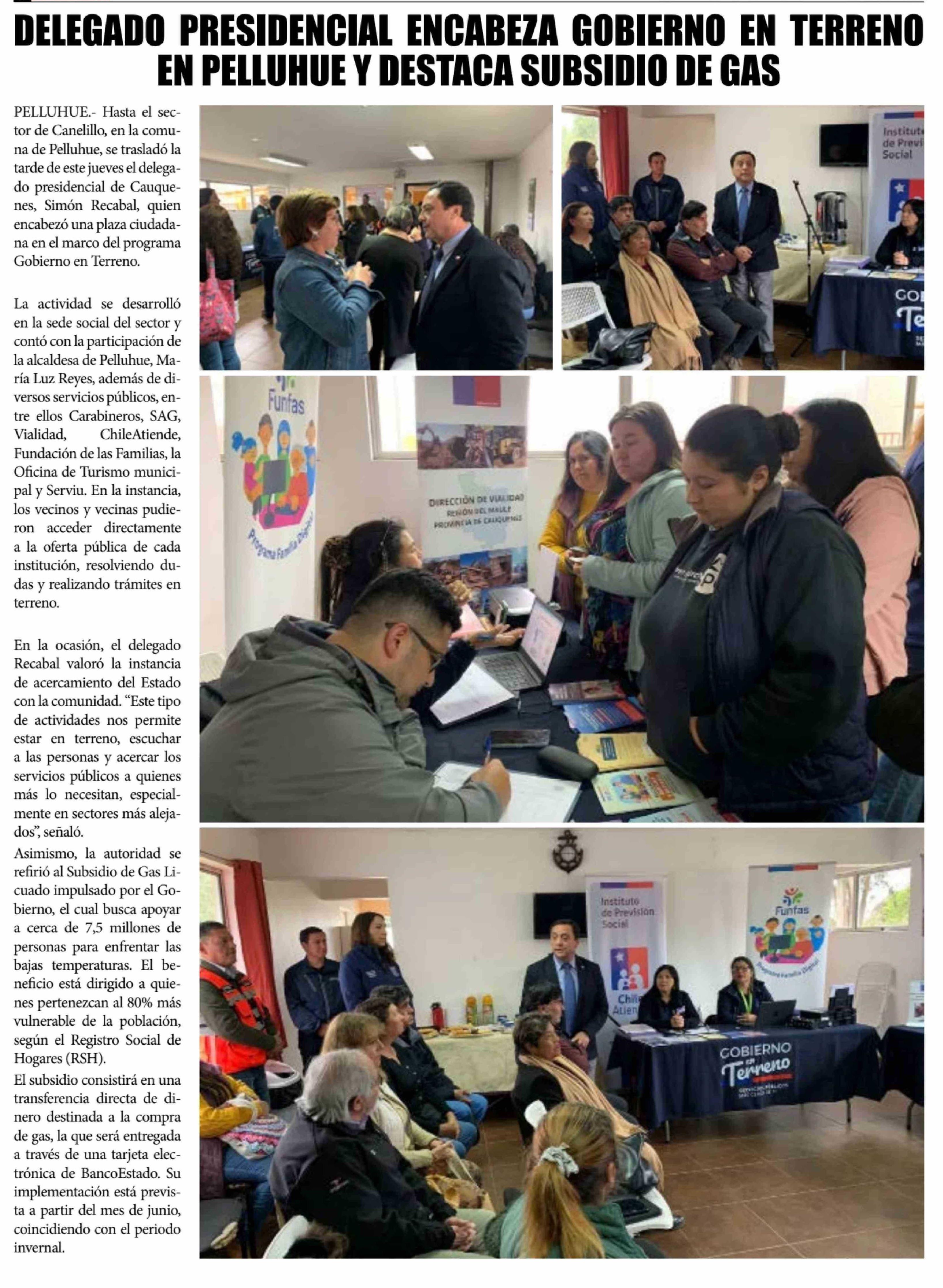 DELEGADO PRESIDENCIAL ENCABEZA GOBIERNO EN TERRENO EN PELLUHUE Y DESTACA SUBSIDIO DE GAS 18-04-2026 El Lector |