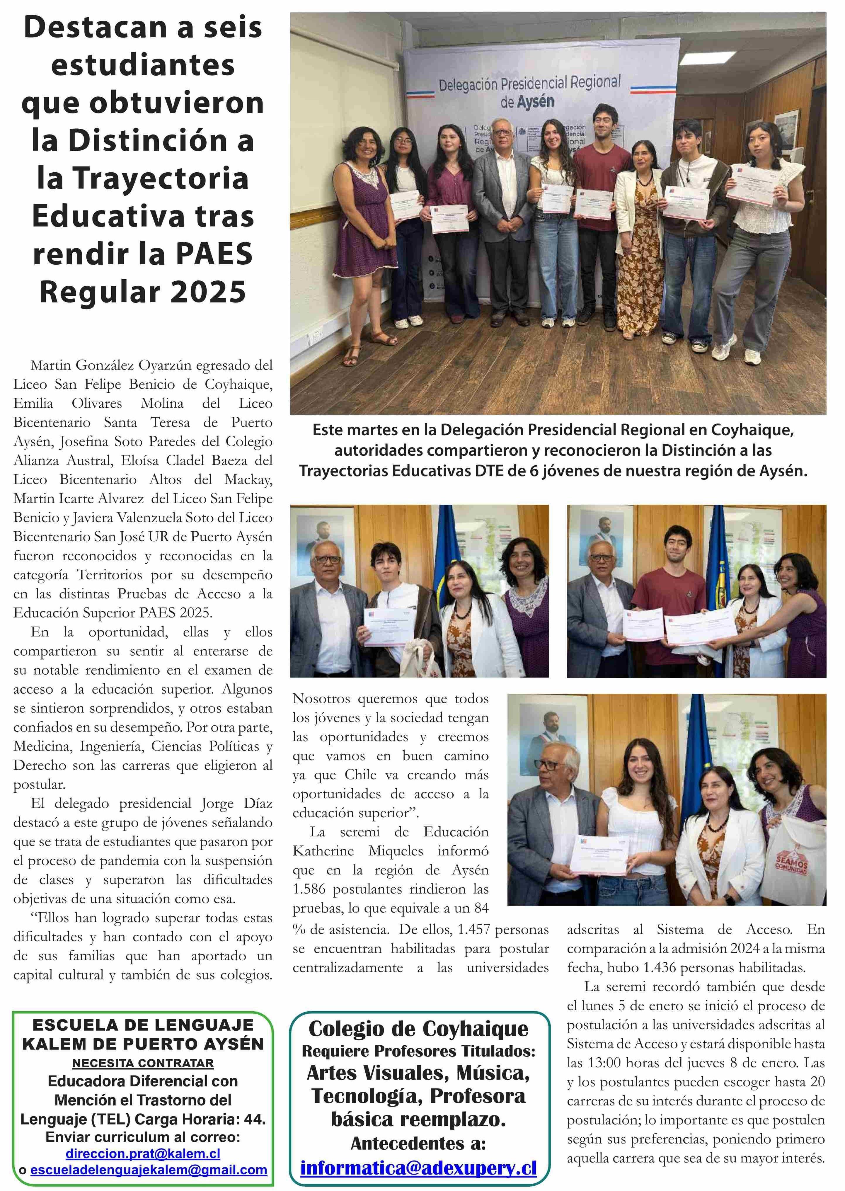 Título: Destacan a seis estudiantes que obtuvieron la Distinción a la Trayectoria Educativa tras rendir la PAES Regular 2025